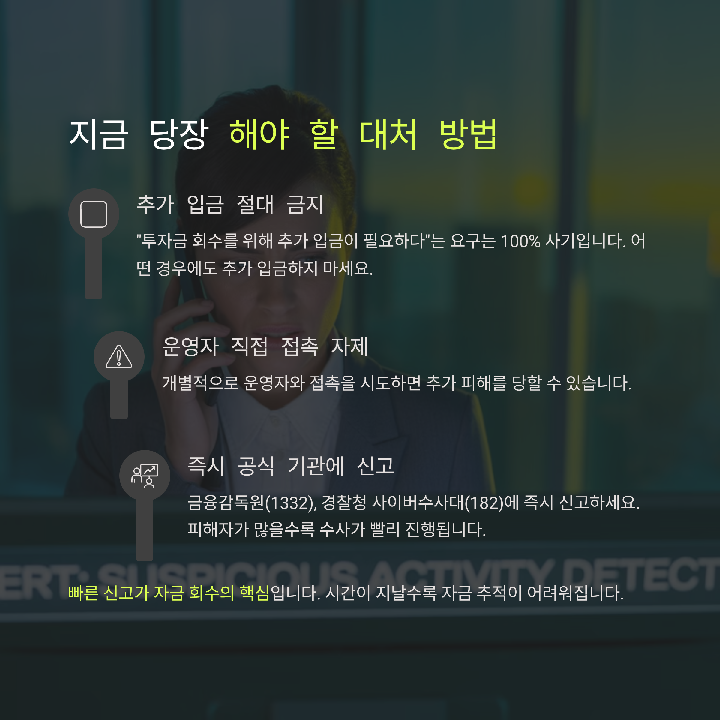 1. 추가 입금 요구에는 절대 응하지 말 것