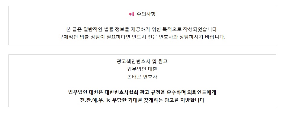 본 포스팅은 일반적인 정보를 제공하며, 특정 상황에 대한 법률 자문은 전문가와 상담하시길 권장합니다.