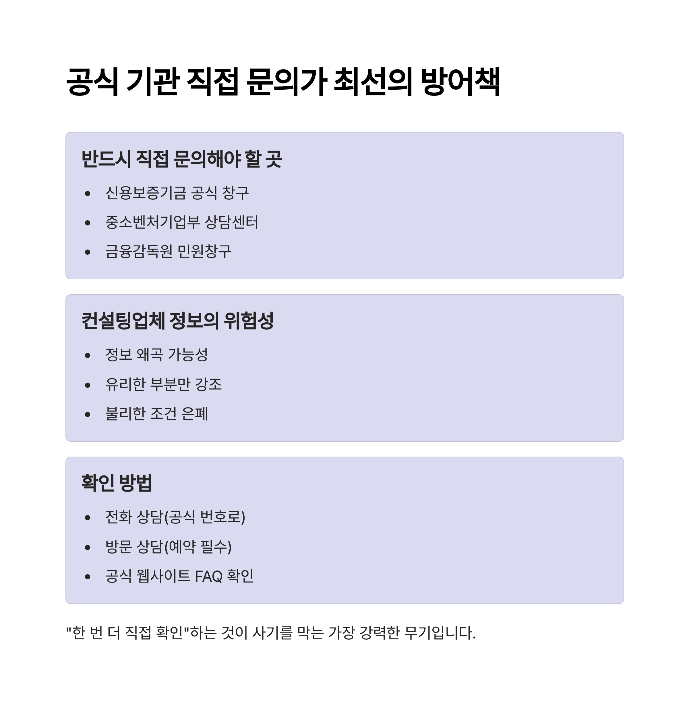 | 컨설팅업체 신뢰성 | 사업자등록증, 실적, 후기 검토 | 비대면 서류 위임 절대 금지 |