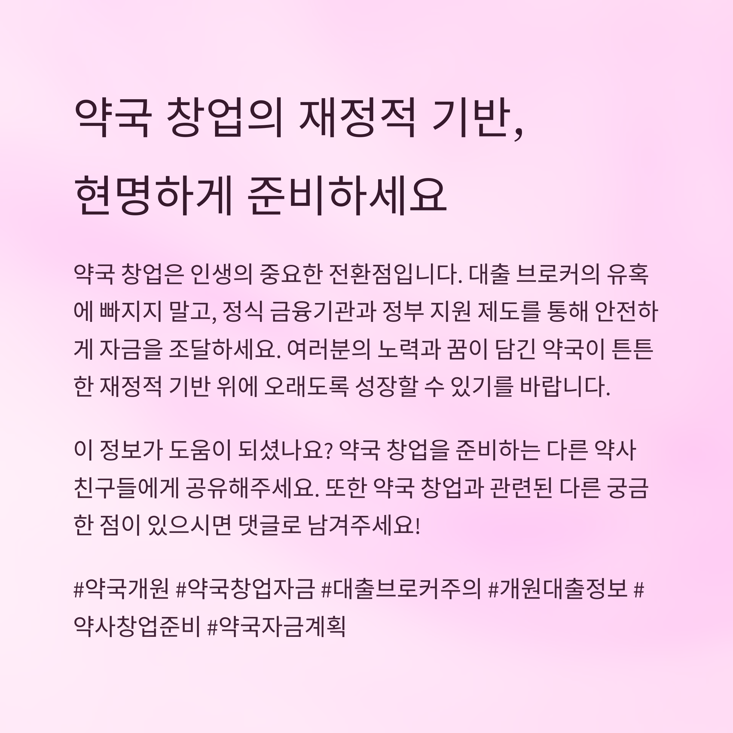 #약국개원 #약국창업자금 #대출브로커주의 #개원대출정보 #약사창업준비 #약국자금계획