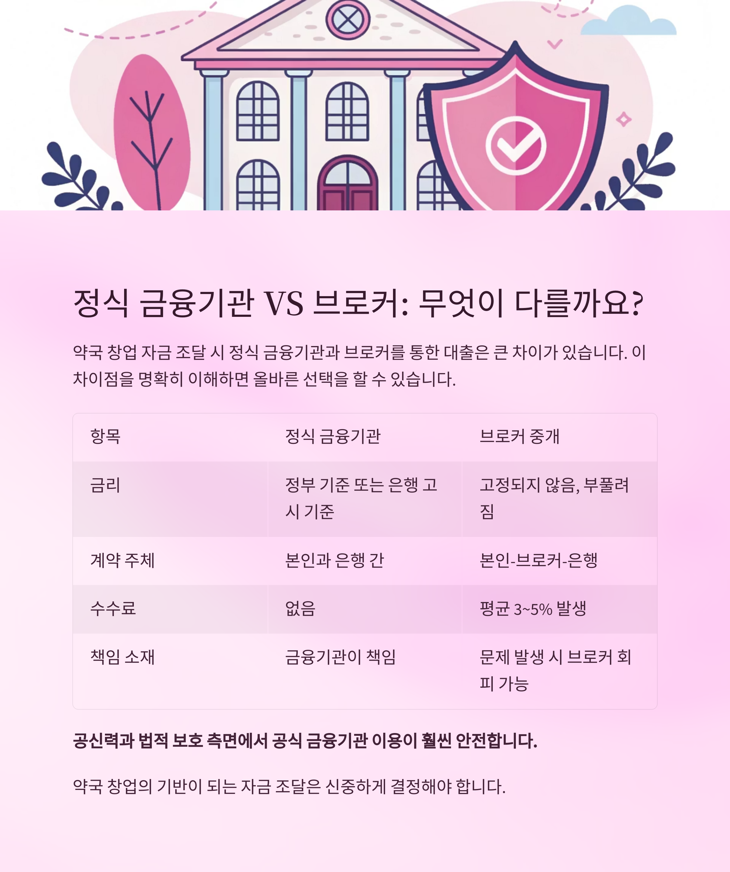 이 글에서는 약국 창업자들이 대출 브로커를 피해야 하는 이유와 안전하게 자금을 조달하는 방법을 상세히 안내드립니다.
