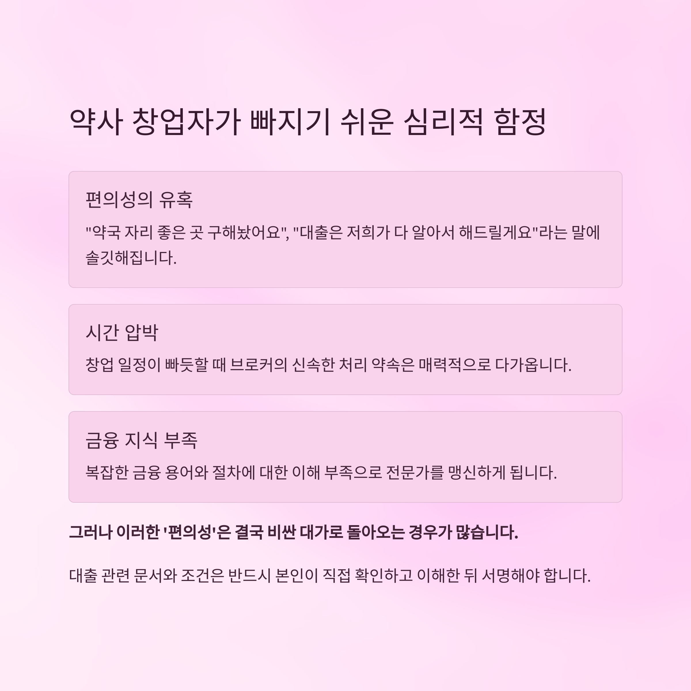 약국 창업 준비 시 피해야 할 함정: 대출 브로커의 진실