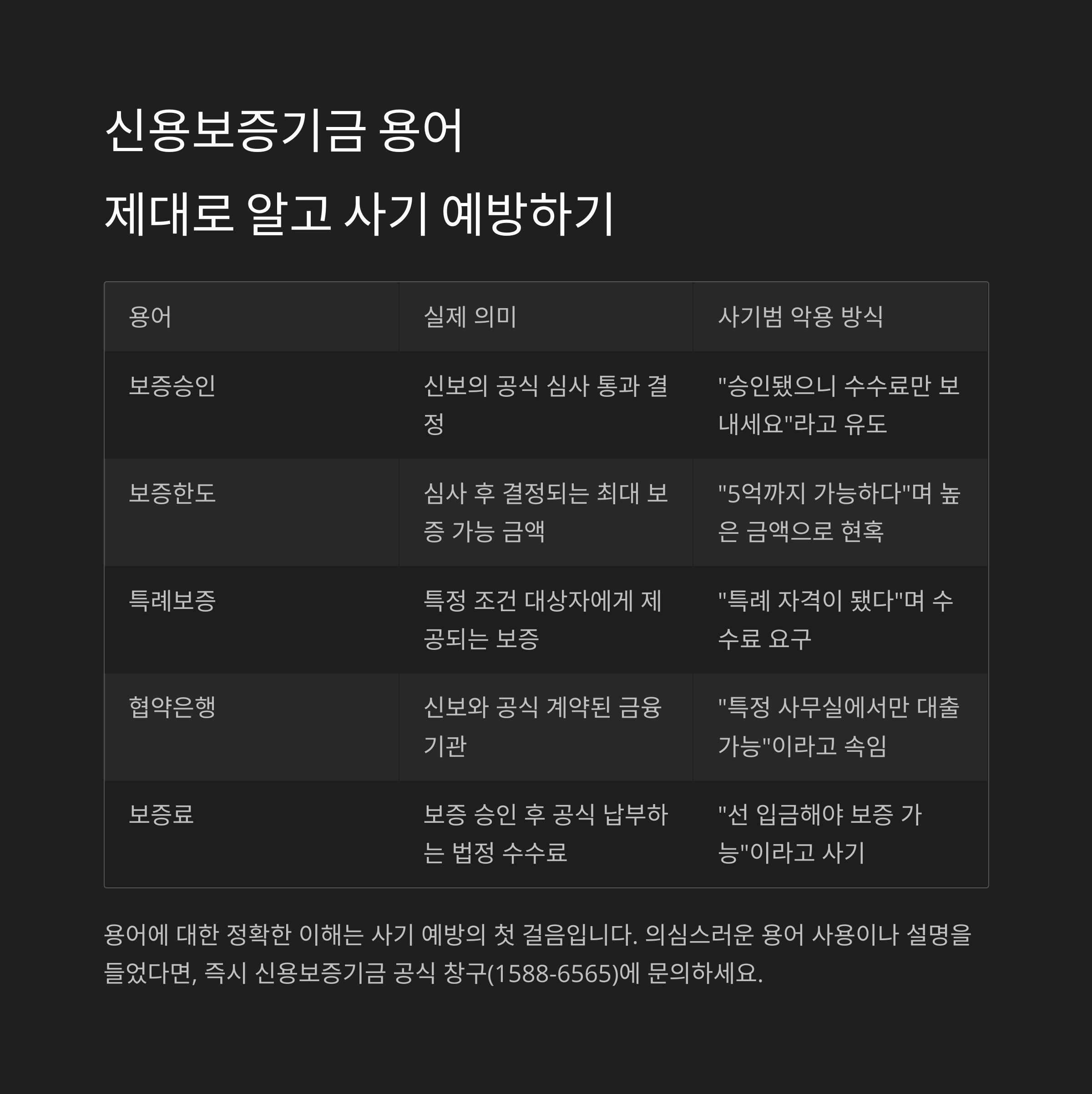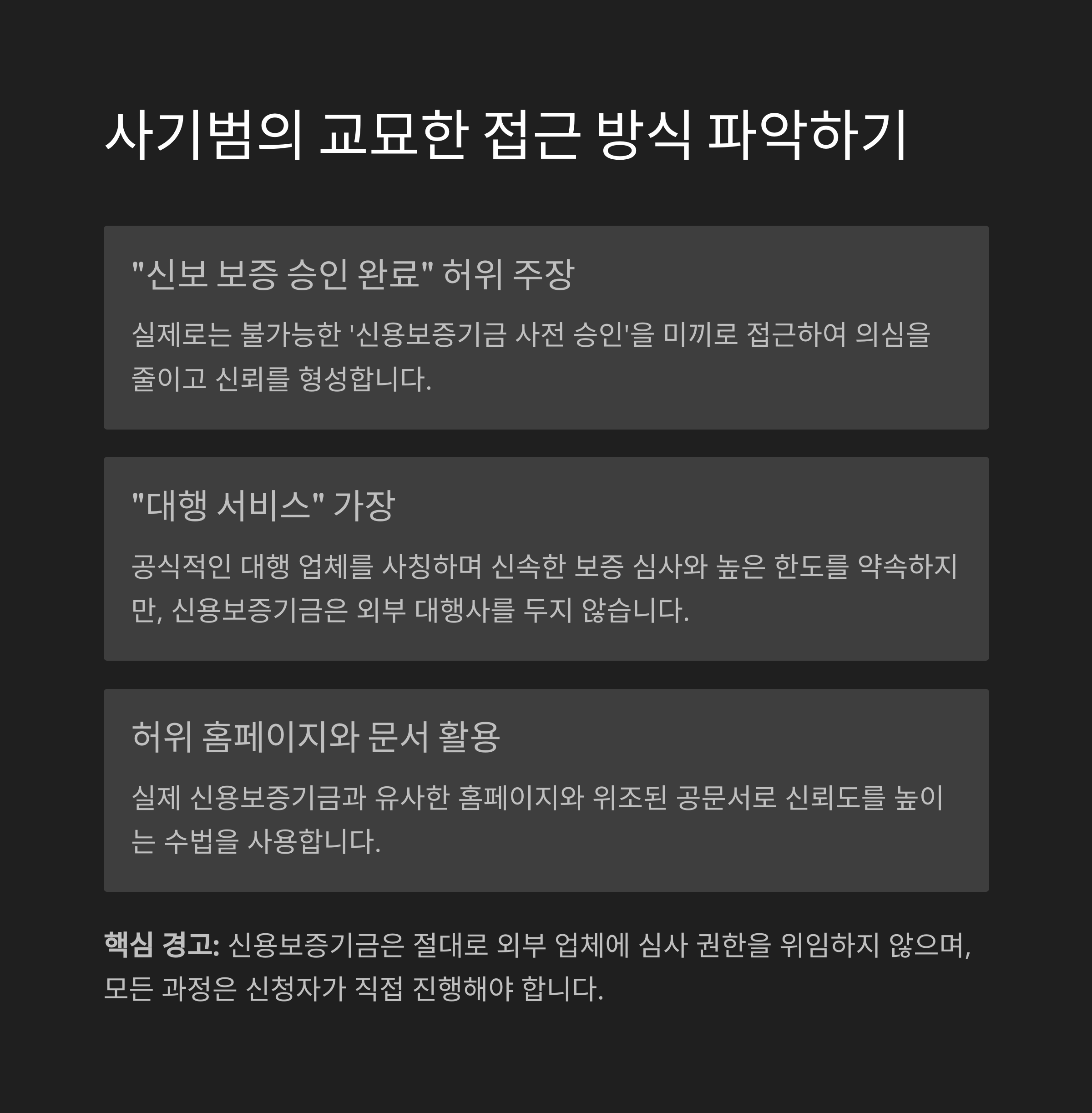 "신용보증기금 보증이 승인됐다"는 말로 접근하여 보증료 명목의 수수료를 요구하거나,