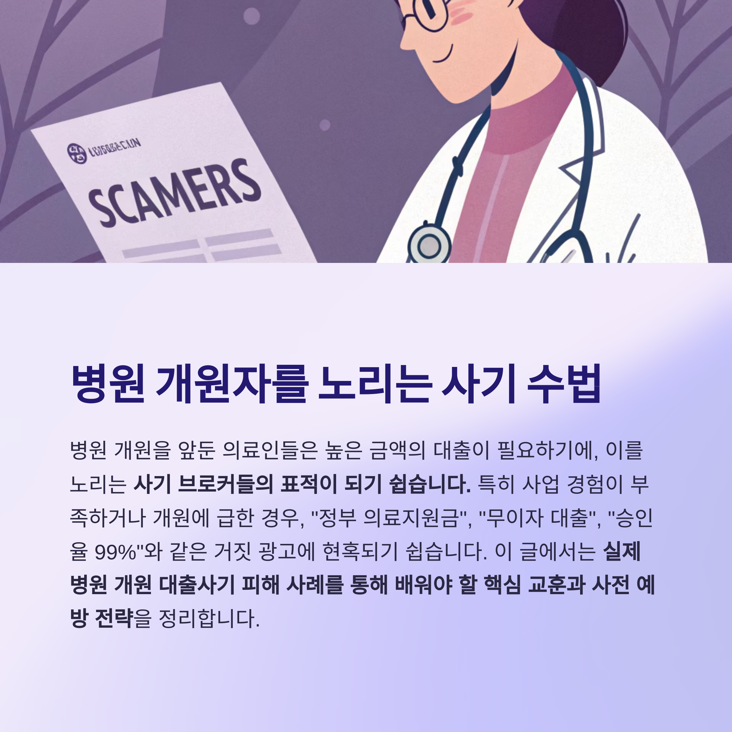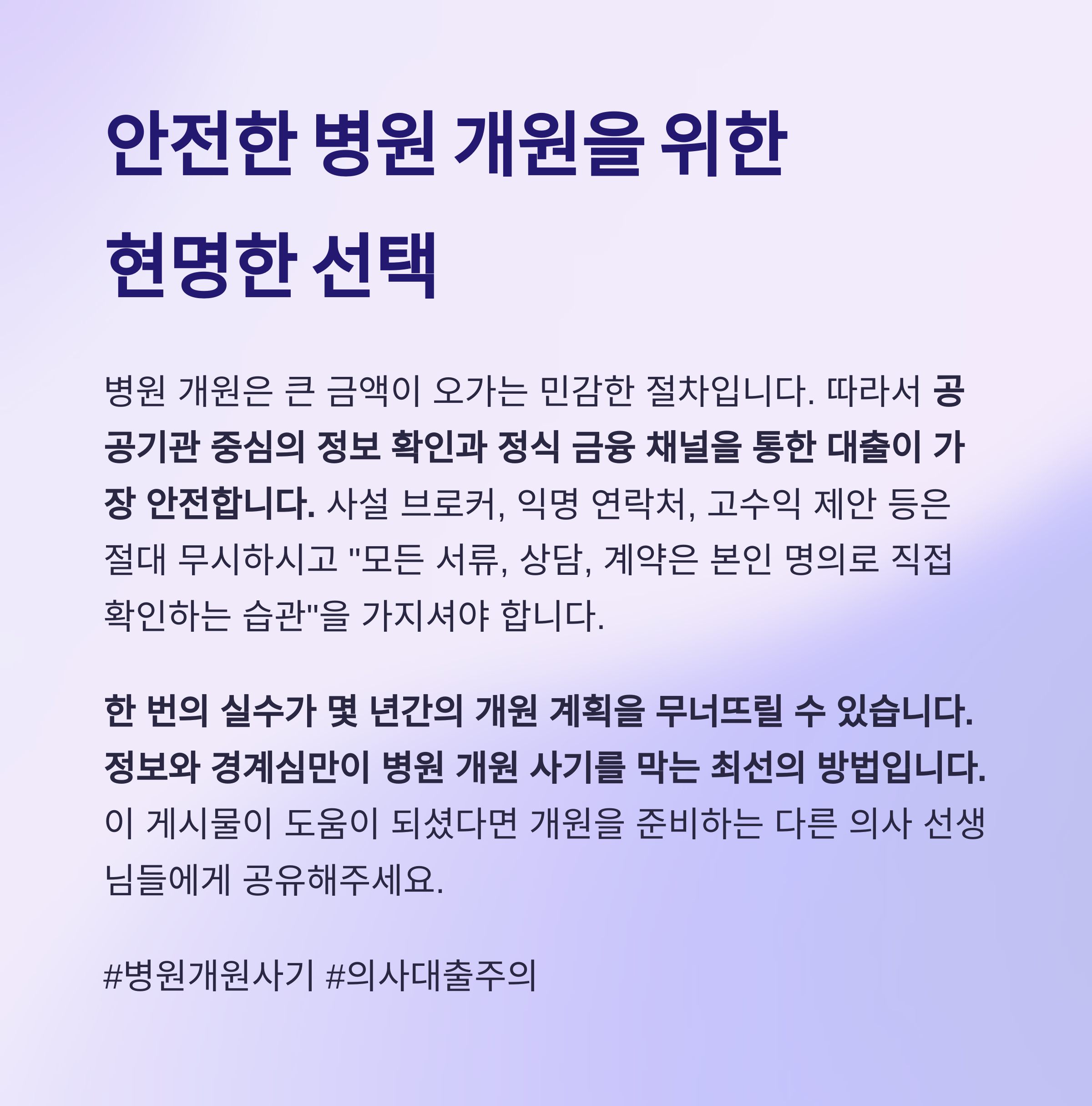 #병원개원사기 #의사대출주의 #브로커사례 #의료정책자금 #창업피해예방 #대출사기