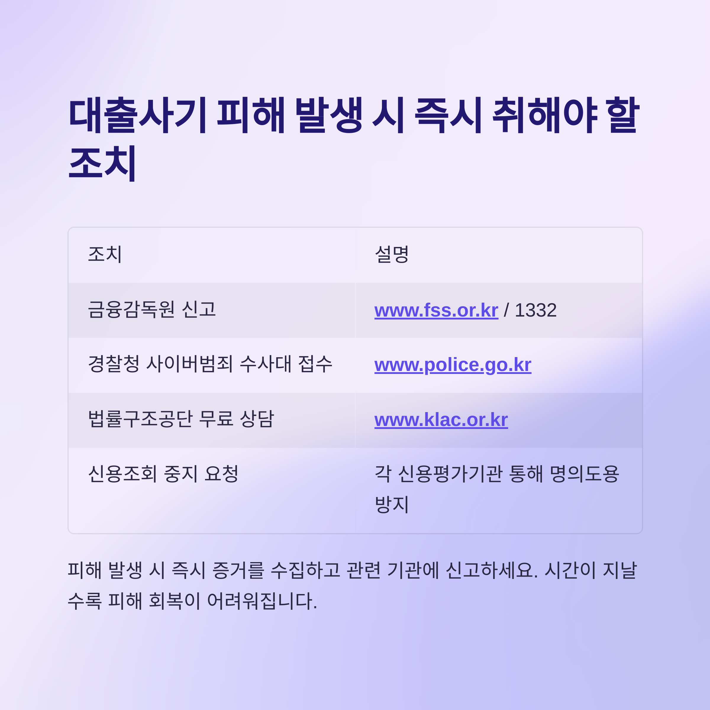 따라서 공공기관 중심의 정보 확인과 정식 금융 채널을 통한 대출이 가장 안전합니다.