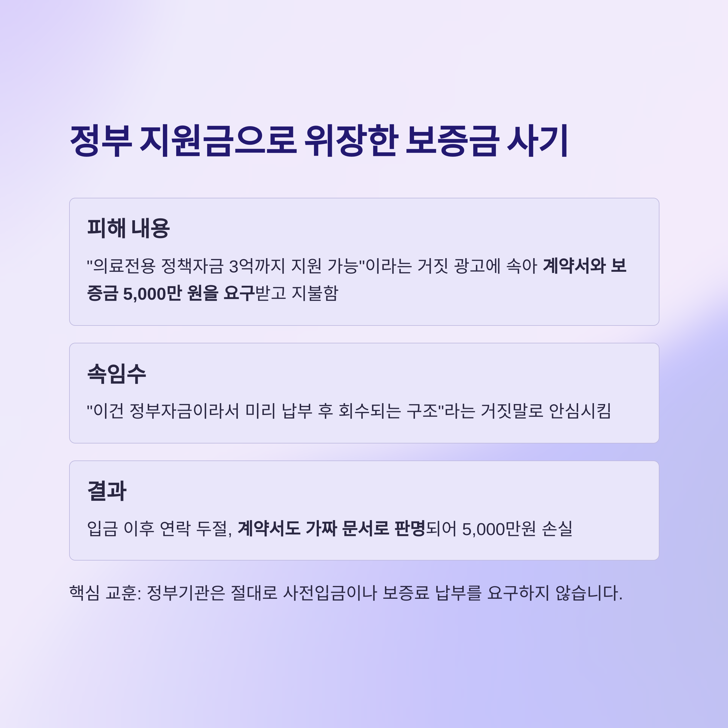 | 선입금 유도형 | 보증료·컨설팅비 선납 요구 | 수백~수천만 원 |