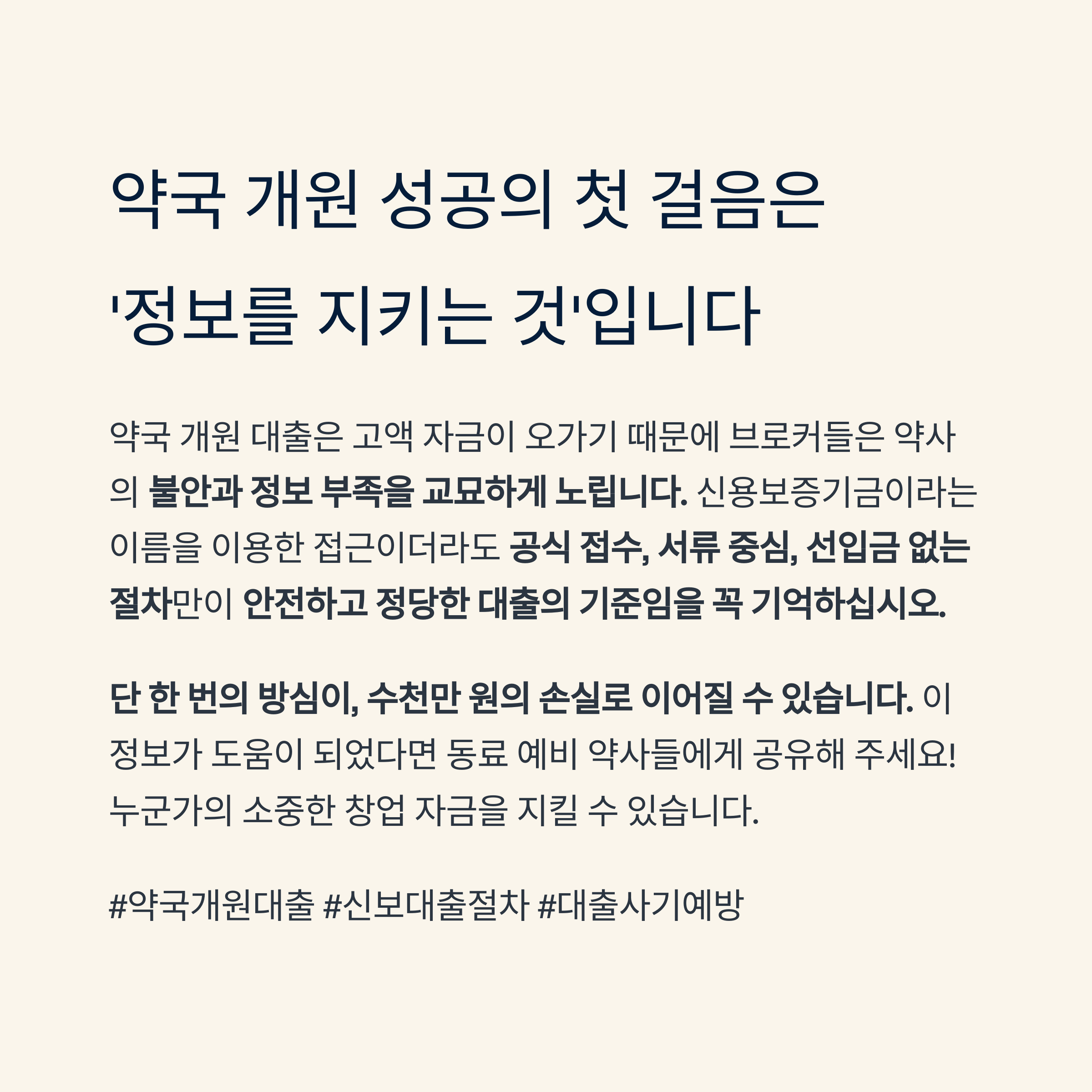 #약국개원대출 #신용보증기금주의 #대출사기예방 #브로커피해차단 #창업자금안전 #신보대출절차