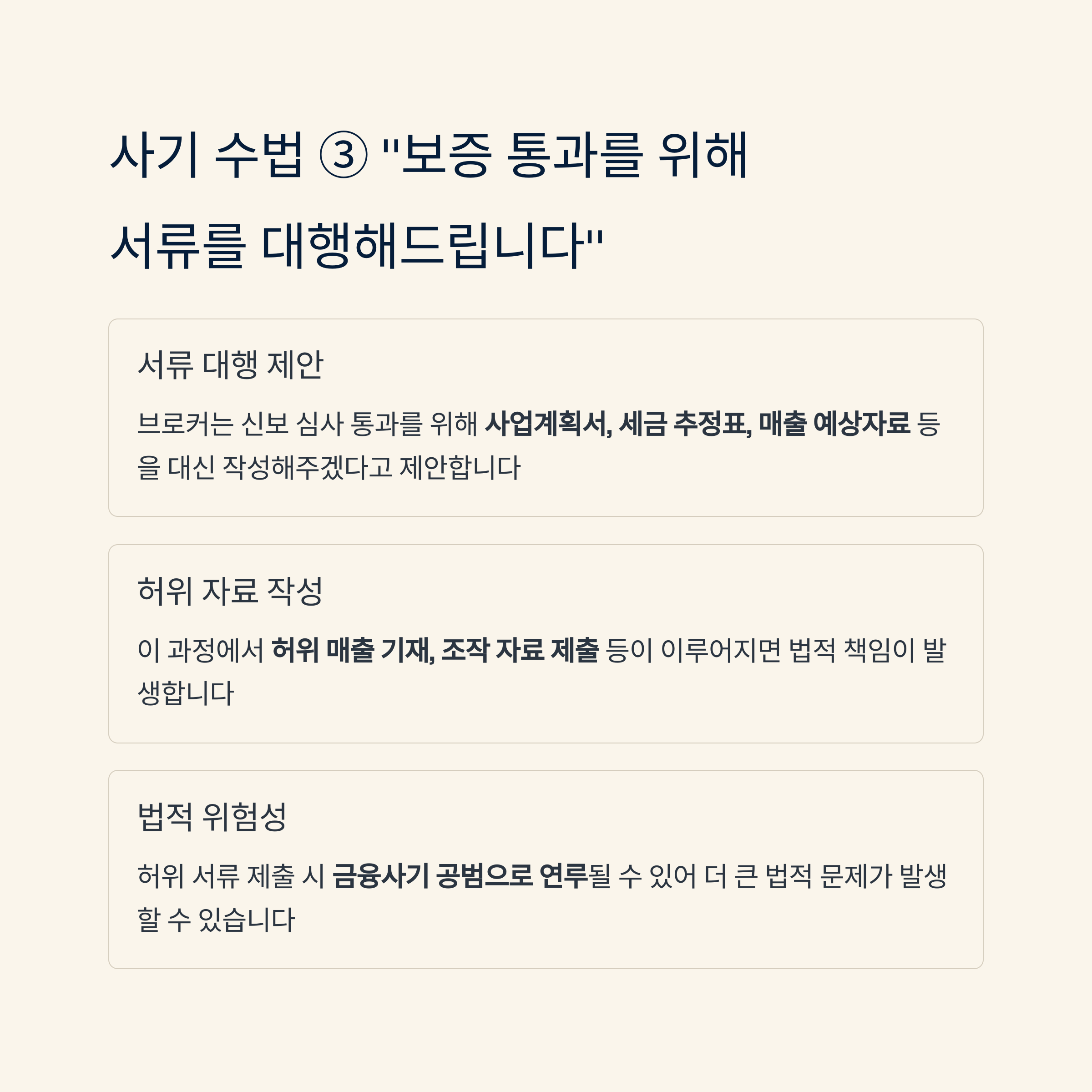 | 서류 작성 | 본인 작성, 사실 기반 | 브로커 대필, 허위 내용 삽입 |