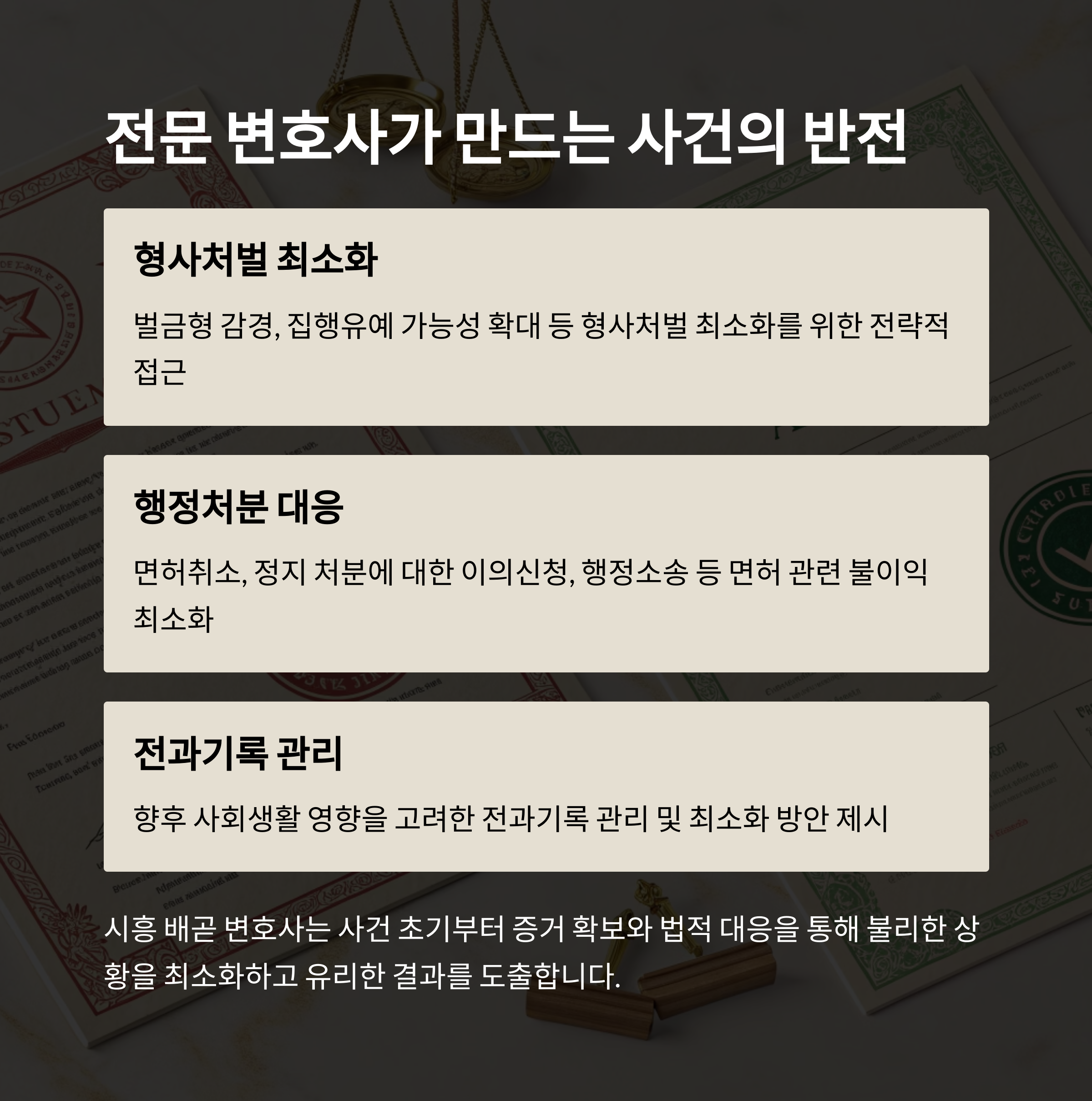 음주운전 사건은 신속한 대응과 전문가의 철저한 분석이 필수적입니다. 시흥 배곧 변호사는 사건 초기부터 증거 확보와 법적 대응을 통해 불리한 상황을 최소화하고 유리한 결과를 도출합니다.