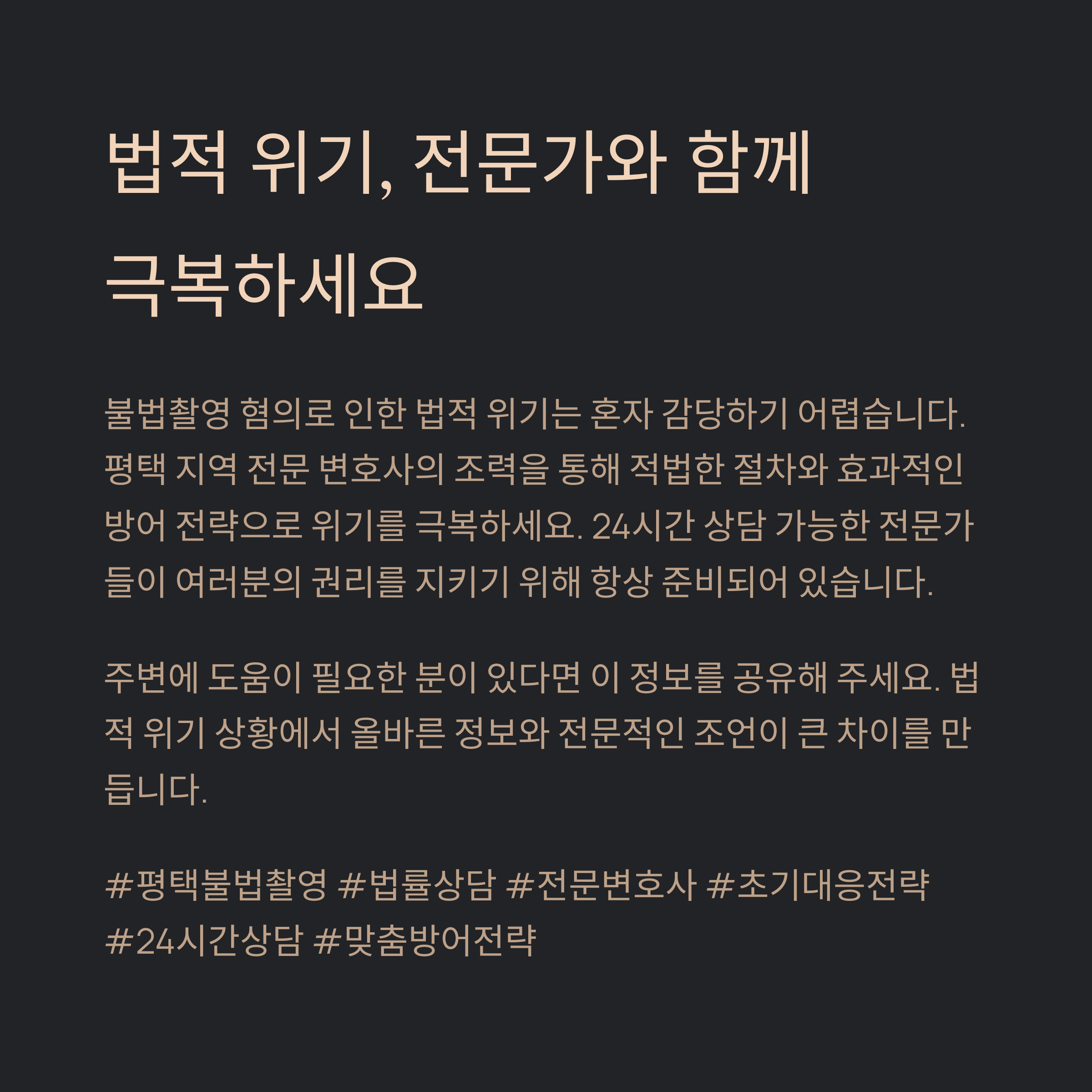 #평택불법촬영 #법률상담 #전문변호사 #초기대응전략 #24시간상담 #맞춤방어전략