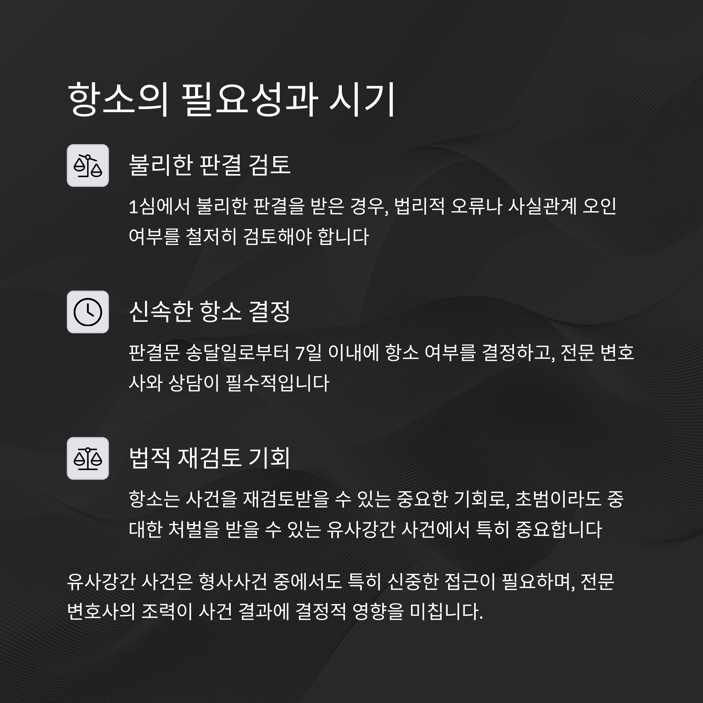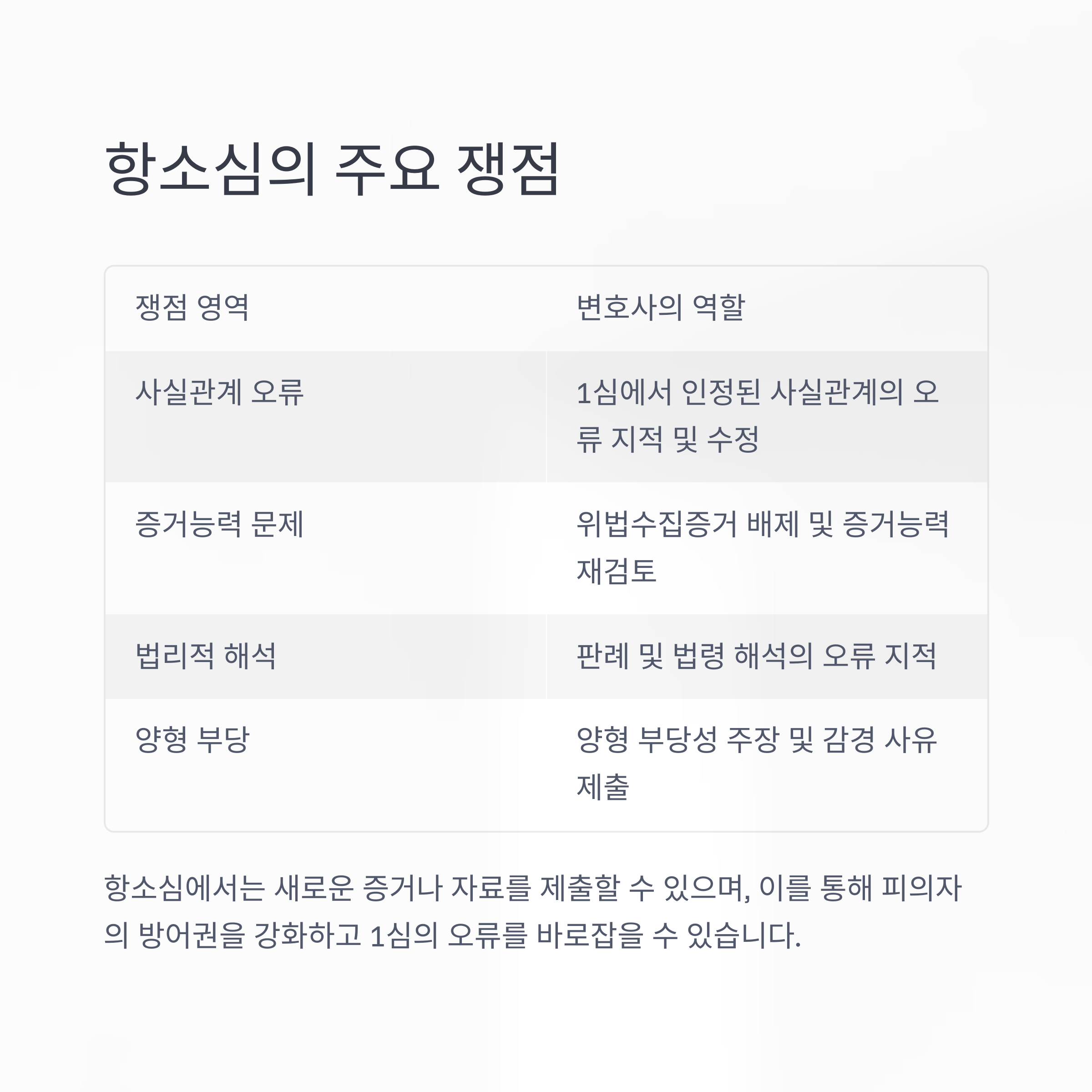 | 방어 전략 | 항소심 맞춤형 법리 및 전략 수립 |