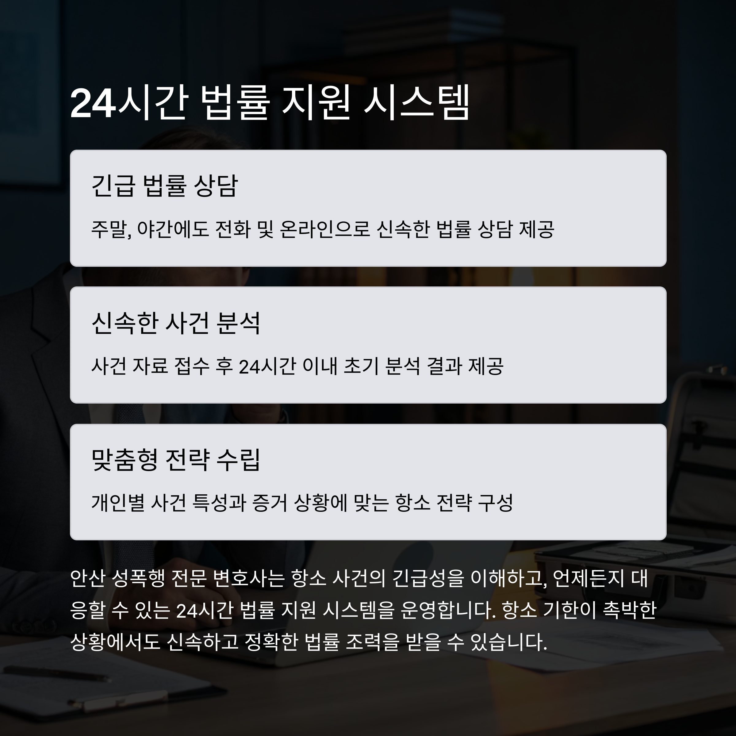 24시간 신속한 법률 상담과 맞춤 전략
