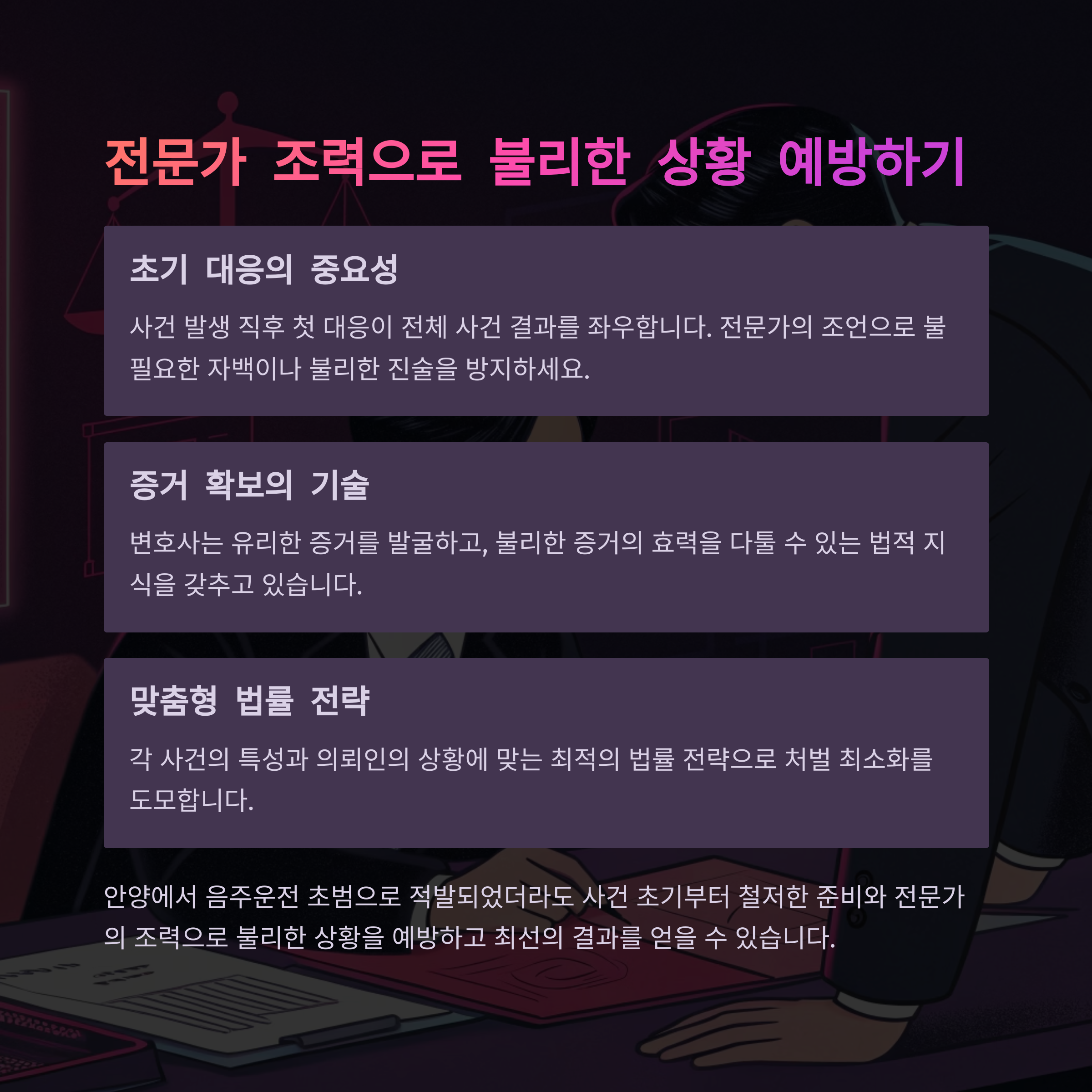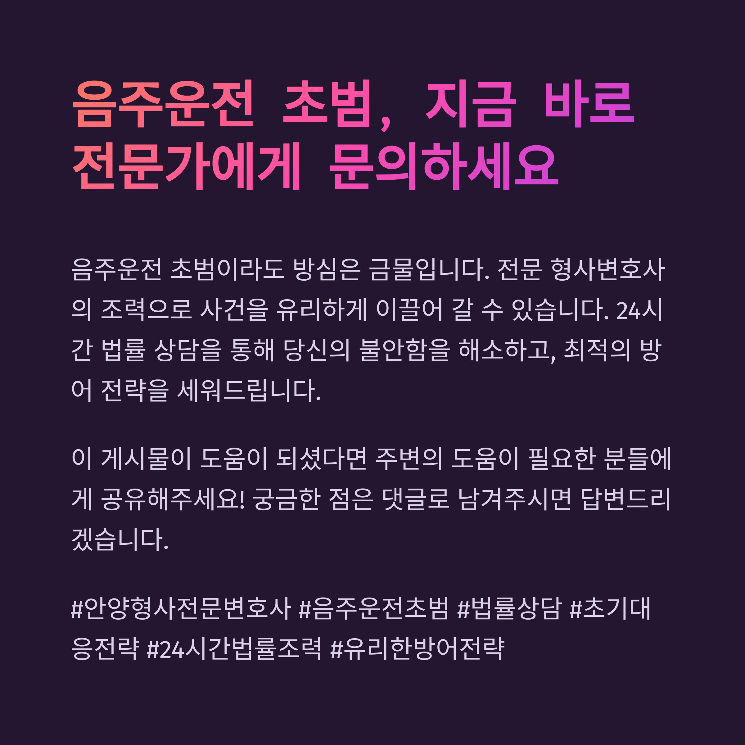 #안양형사전문변호사 #음주운전초범 #법률상담 #초기대응전략 #24시간법률조력 #유리한방어전략