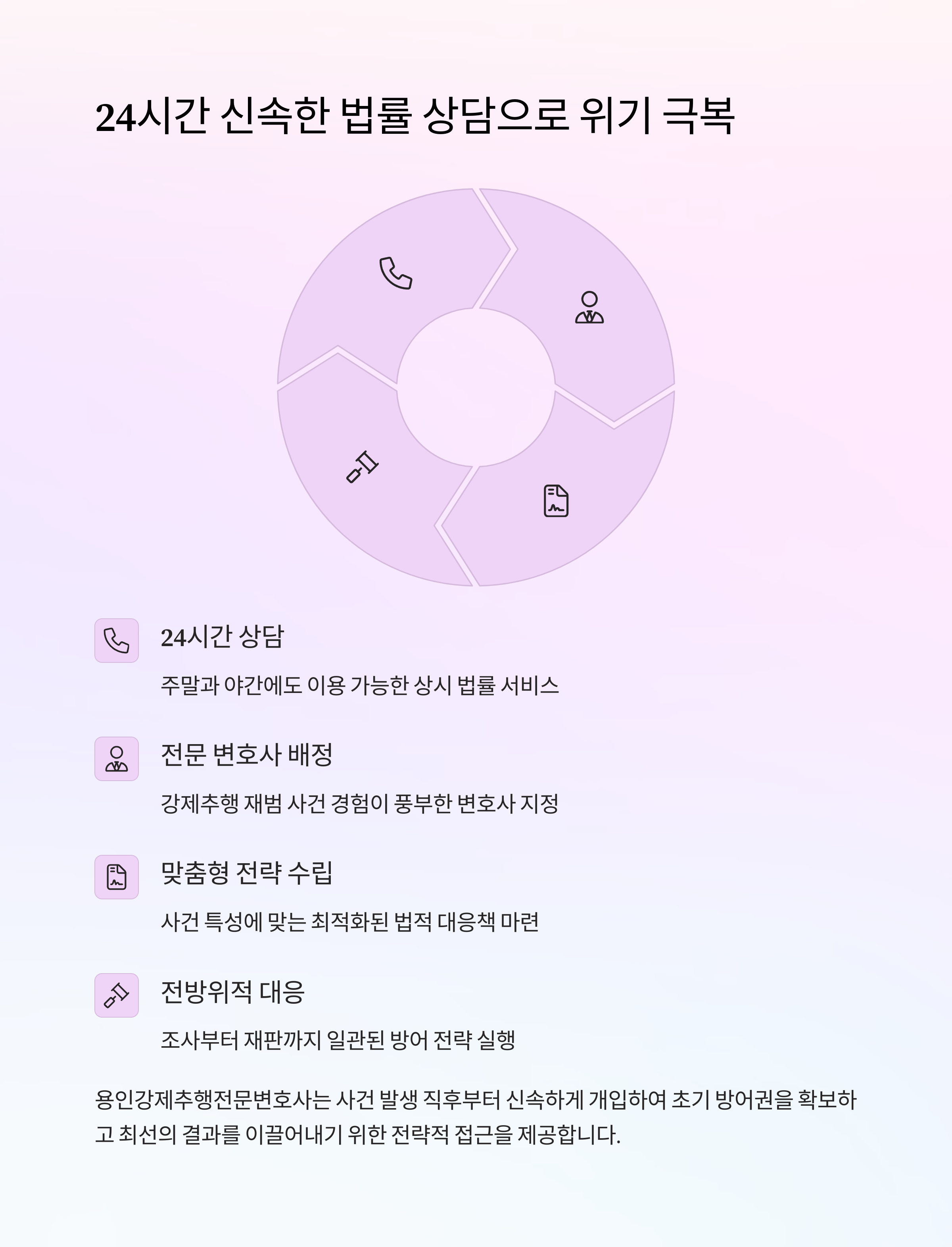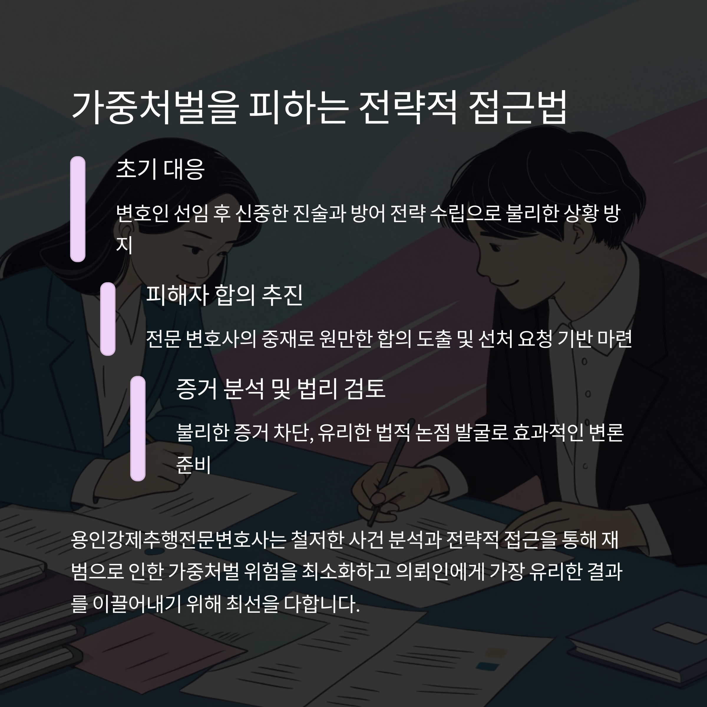 | 방어 전략 | 사건별 맞춤 전략과 철저한 방어권 보장 |