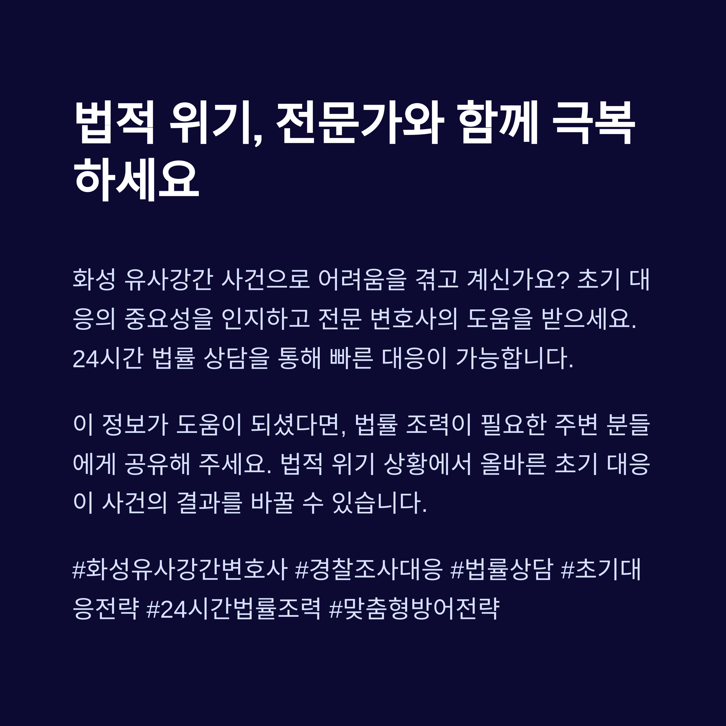 #화성유사강간변호사 #경찰조사대응 #법률상담 #초기대응전략 #24시간법률조력 #맞춤형방어전략