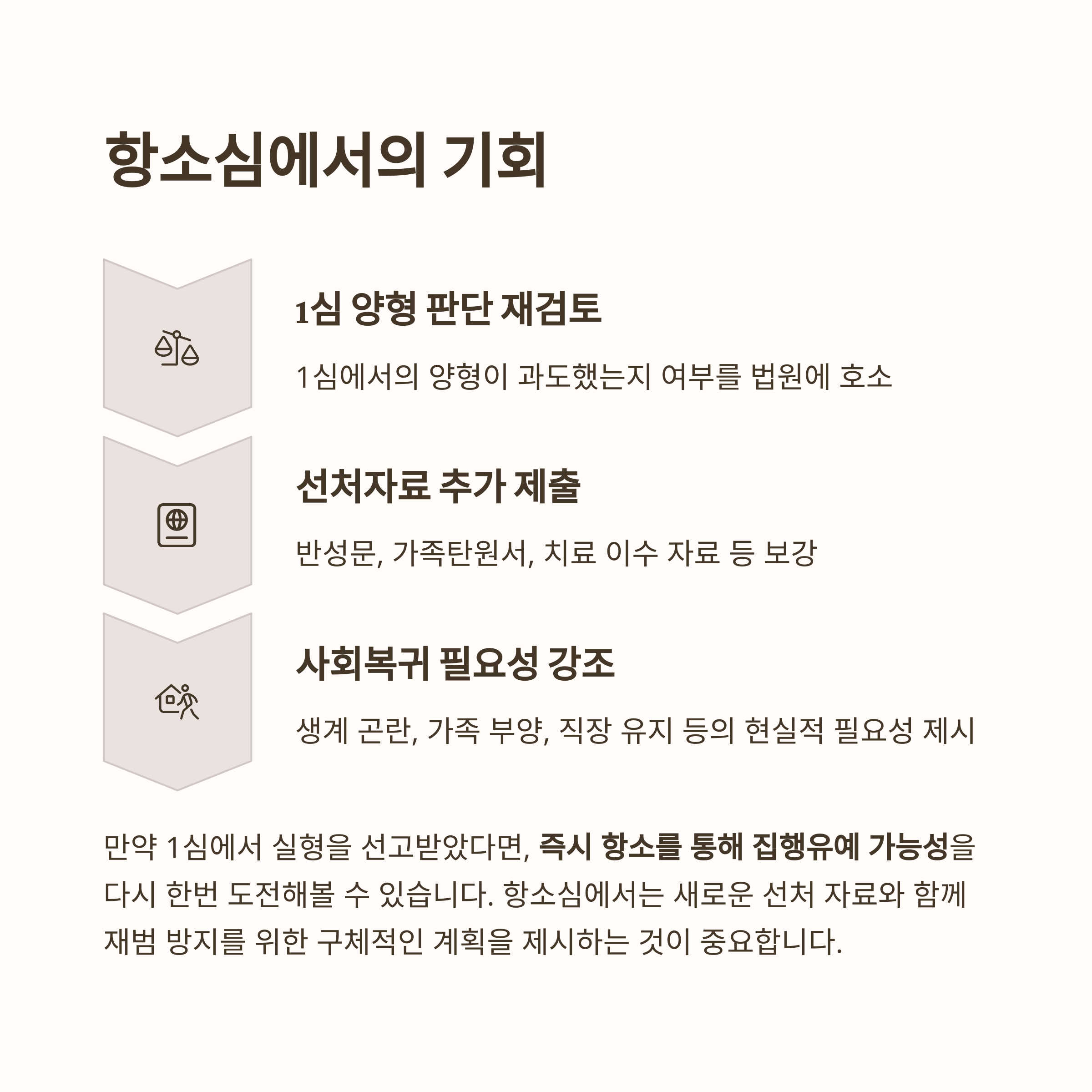 즉시 항소를 통해 집행유예 가능성을 다시 한번 도전해볼 수 있습니다.