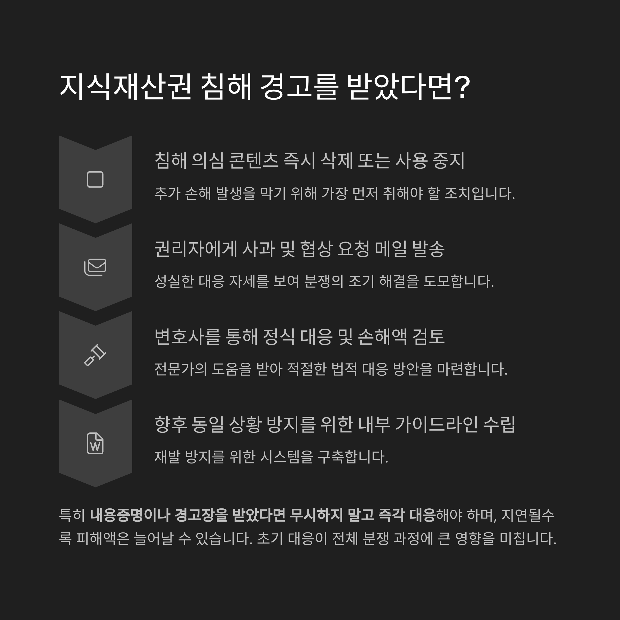 특히 내용증명이나 경고장을 받았다면 무시하지 말고 즉각 대응해야 하며,