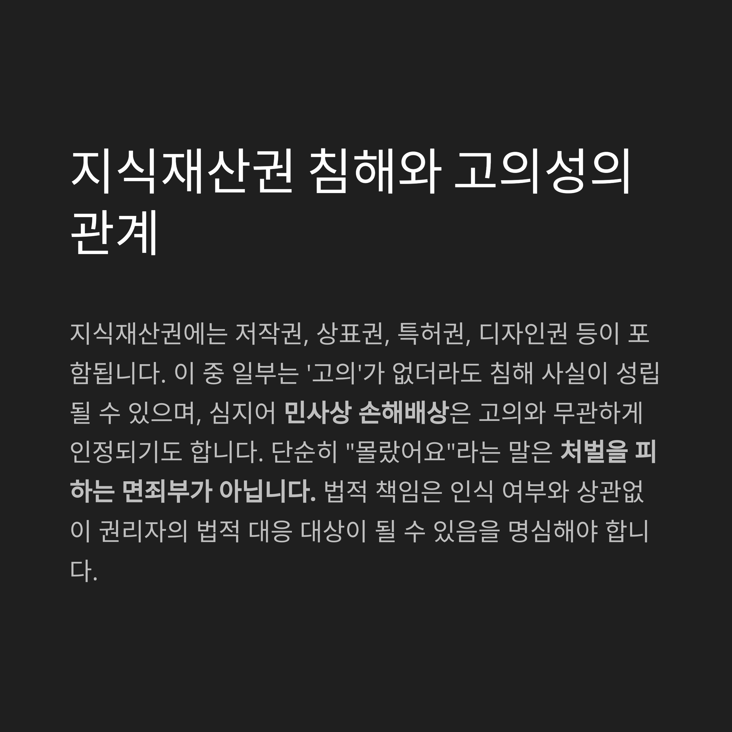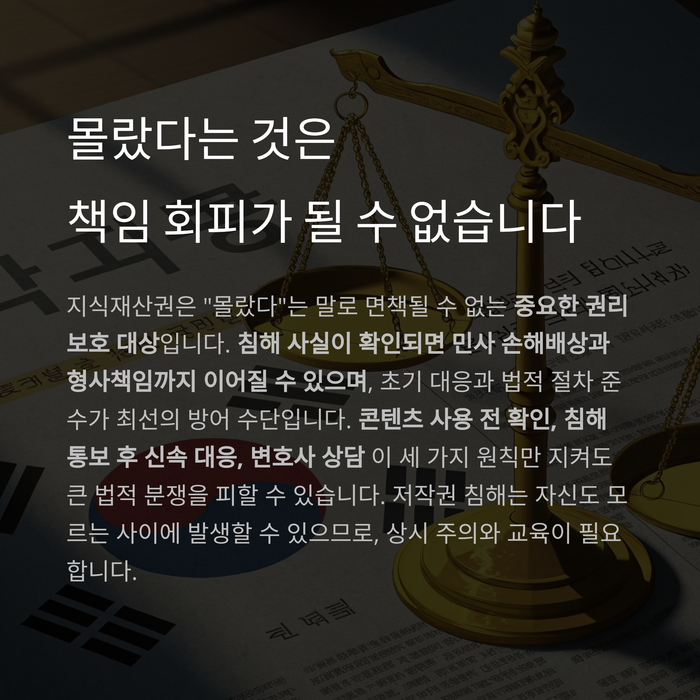 #지식재산권침해 #저작권몰랐음 #지재권법적책임 #상표권분쟁 #침해예방가이드 #저작권소송대응