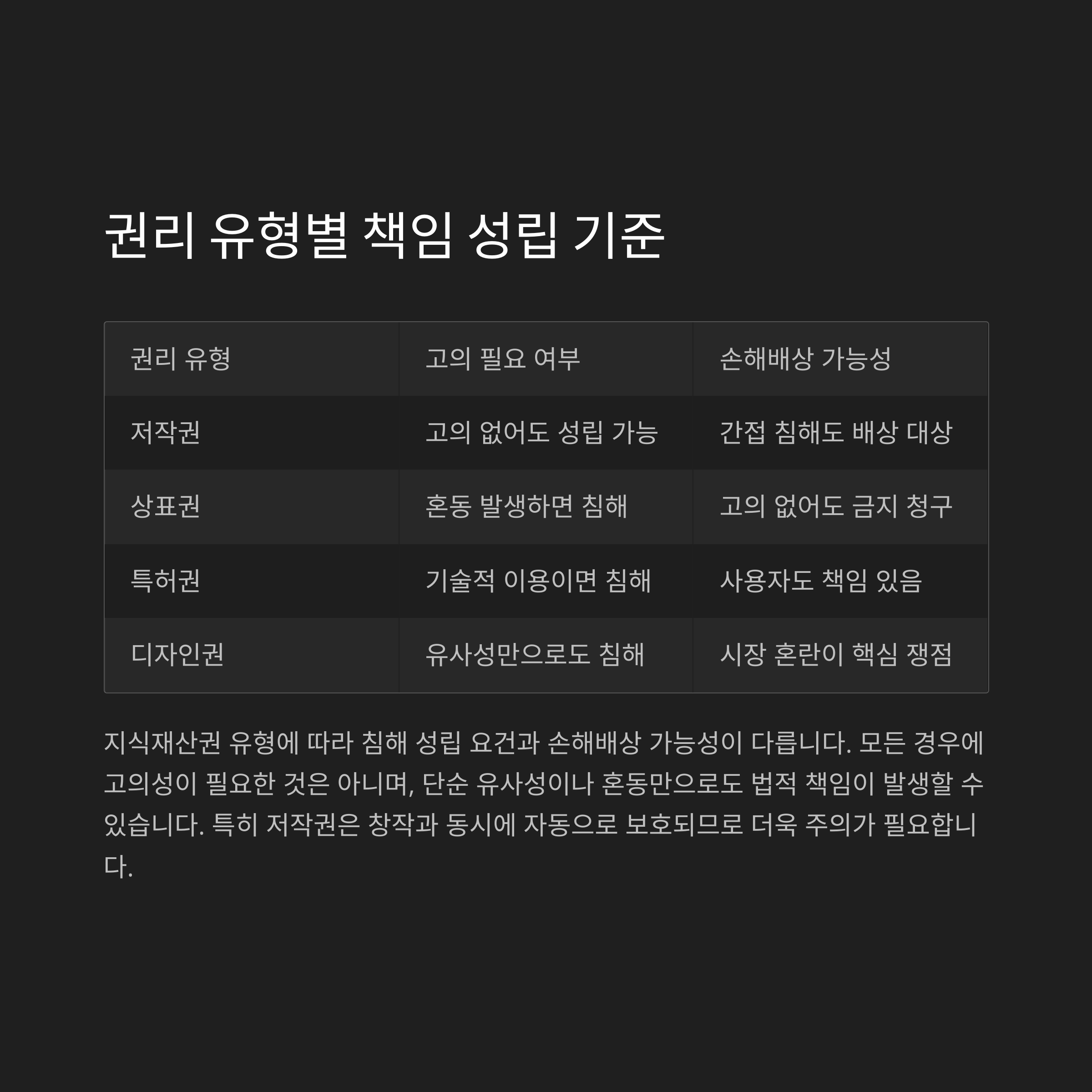 지식재산권 종류별 책임 성립 기준
