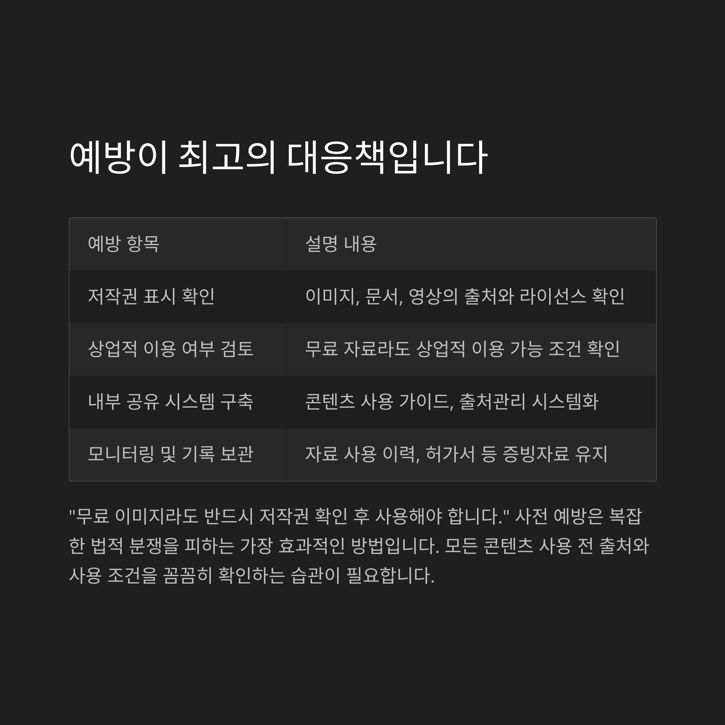 이 세 가지 원칙만 지켜도 큰 법적 분쟁을 피할 수 있습니다.