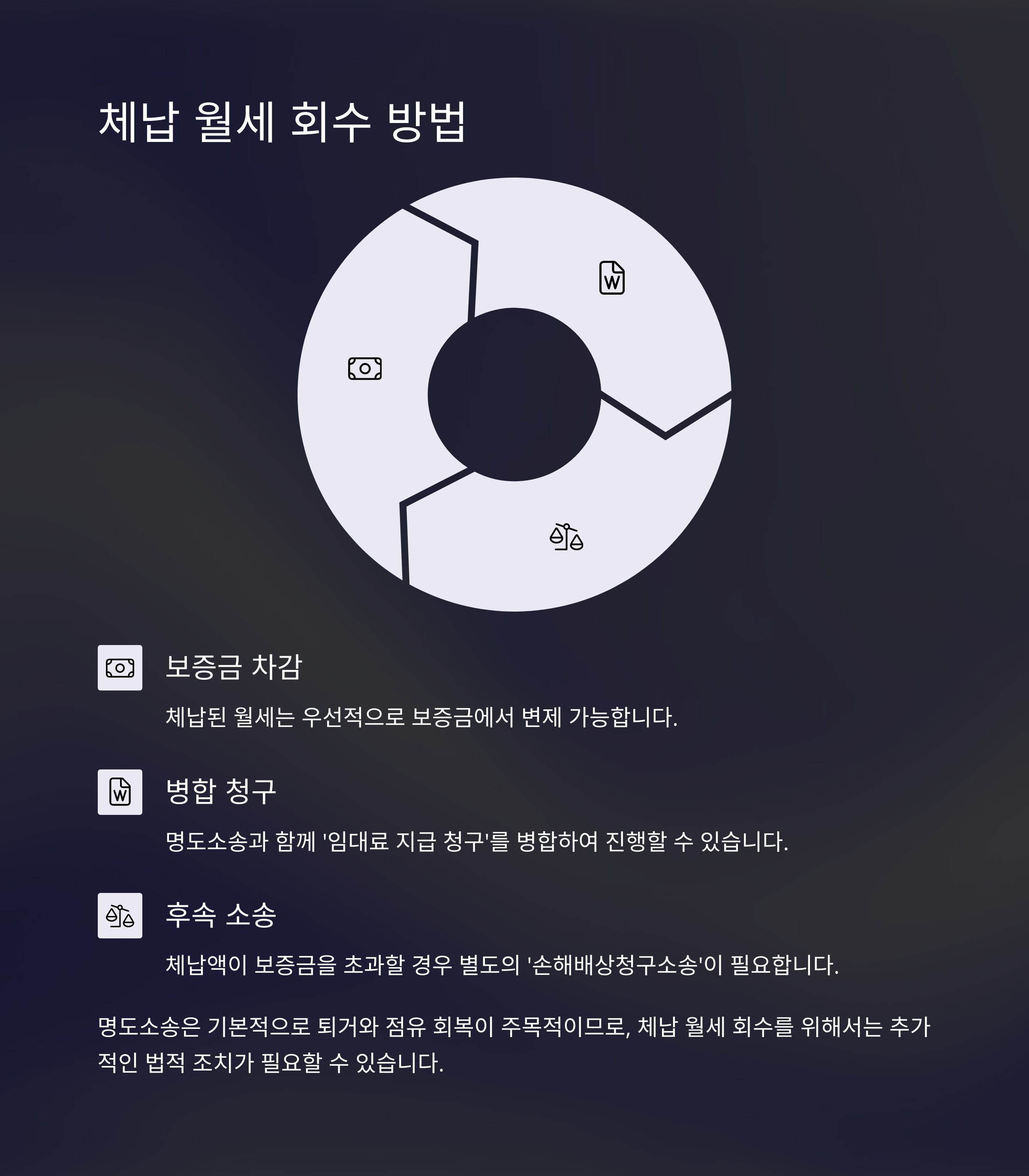 체납 월세는 별도 '임대료 지급 청구'를 병합하거나 후속 소송으로 청구 가능합니다.