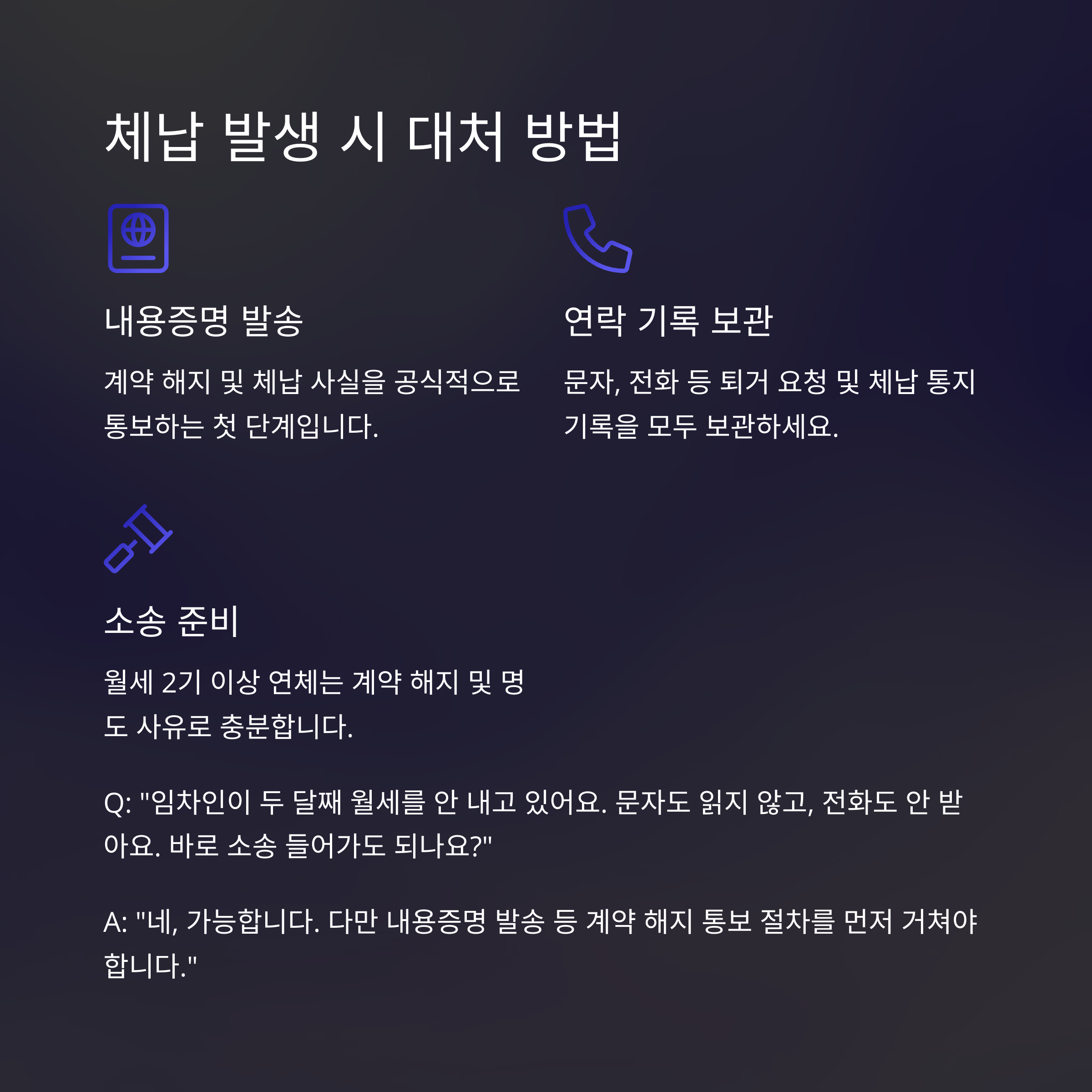 Q: "임차인이 두 달째 월세를 안 내고 있어요. 문자도 읽지 않고, 전화도 안 받아요.