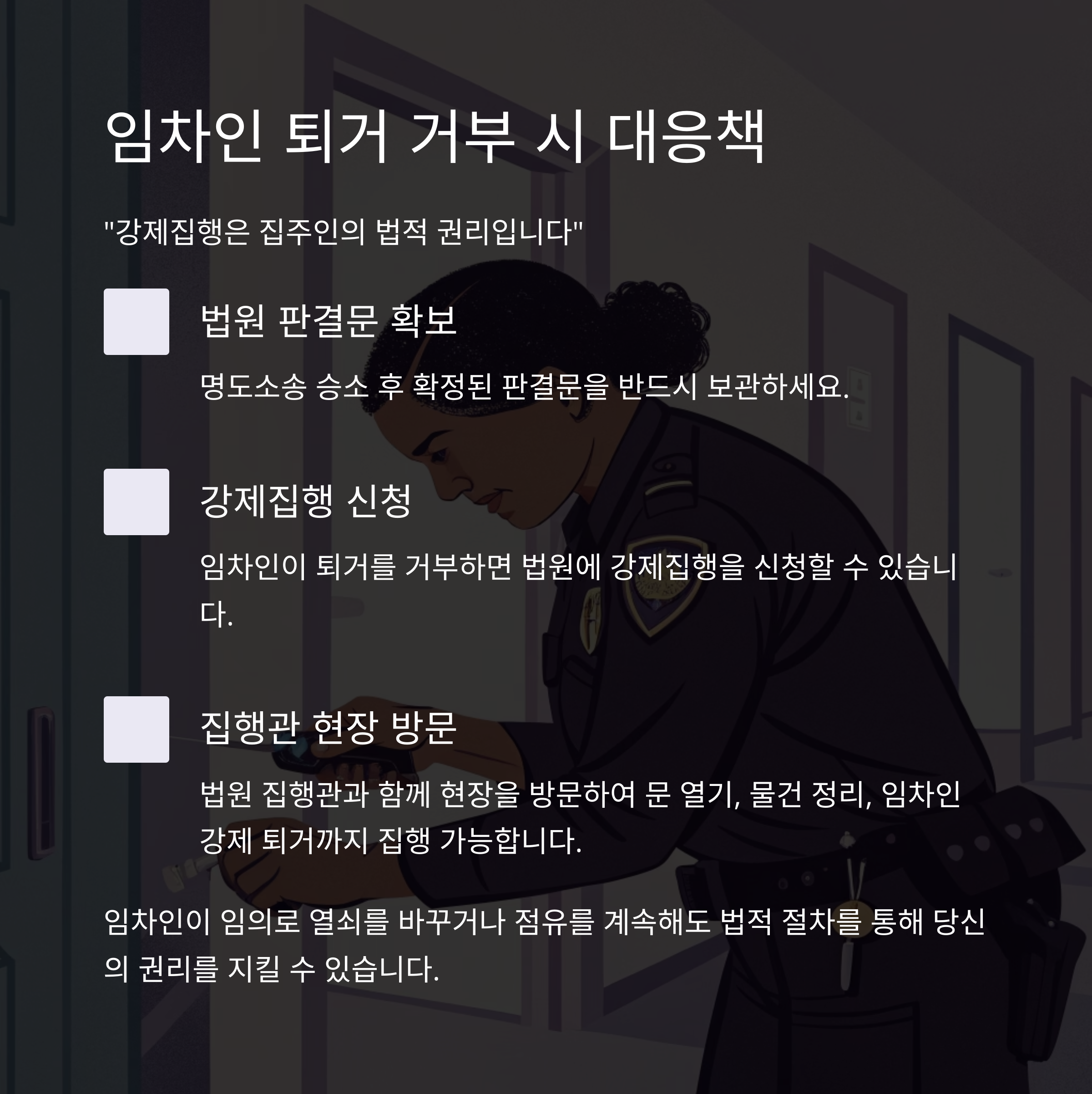 | 강제집행 진행 | 법원 집행관이 열쇠 교체·물품 정리 진행 |