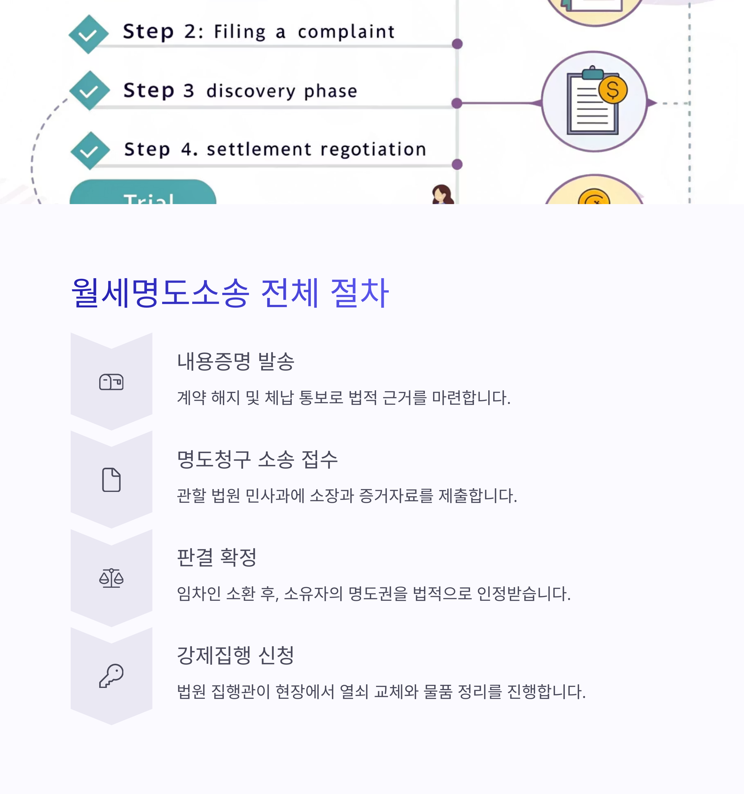 | 명도소송 접수 | 관할 법원 민사과에 서류 제출 |
