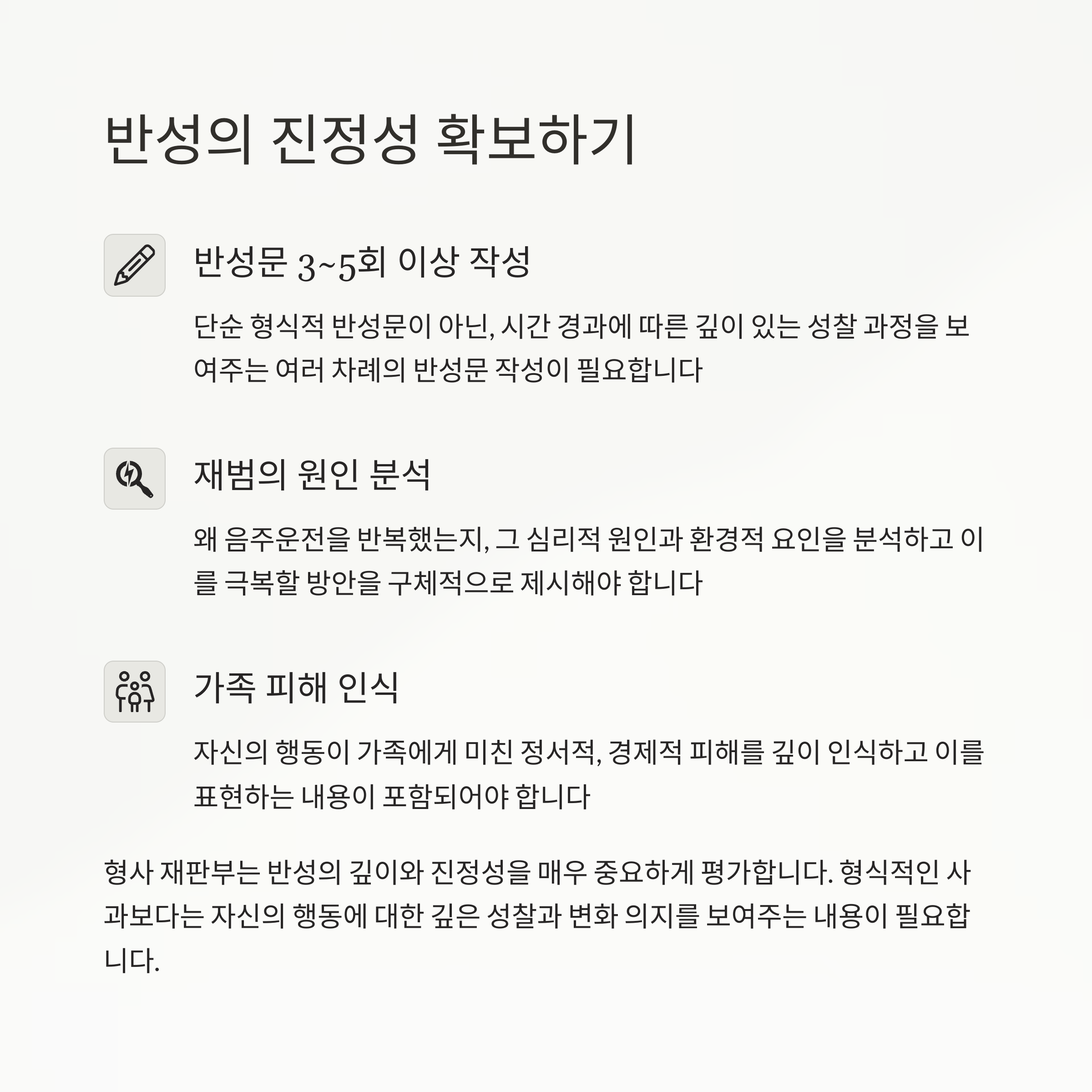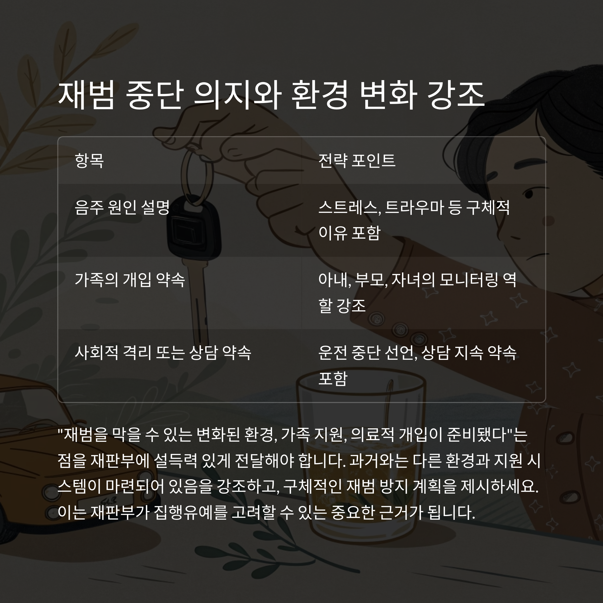 - 과거 음주 이후 금주 노력 및 상담 이수 등 구체적 사례 기재
