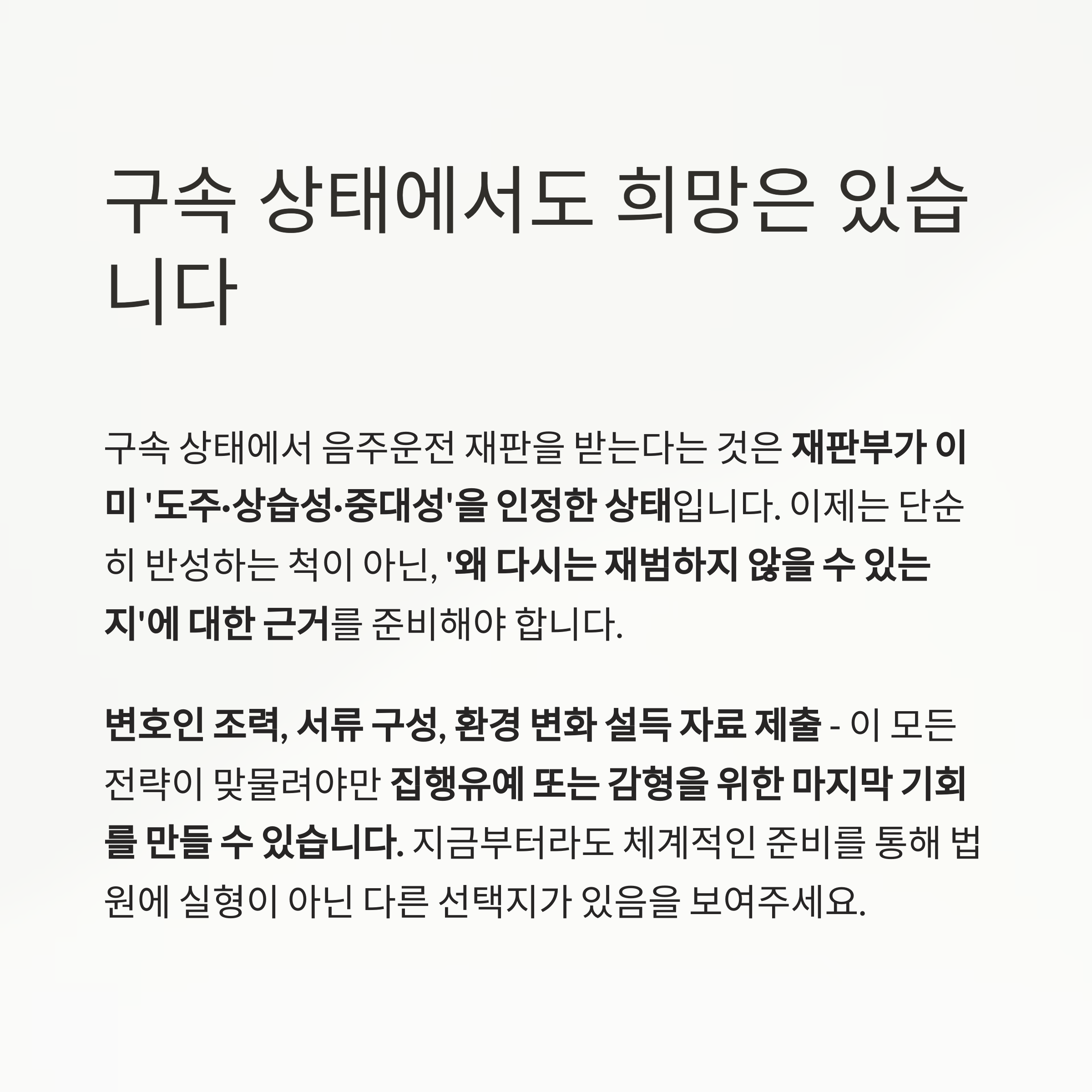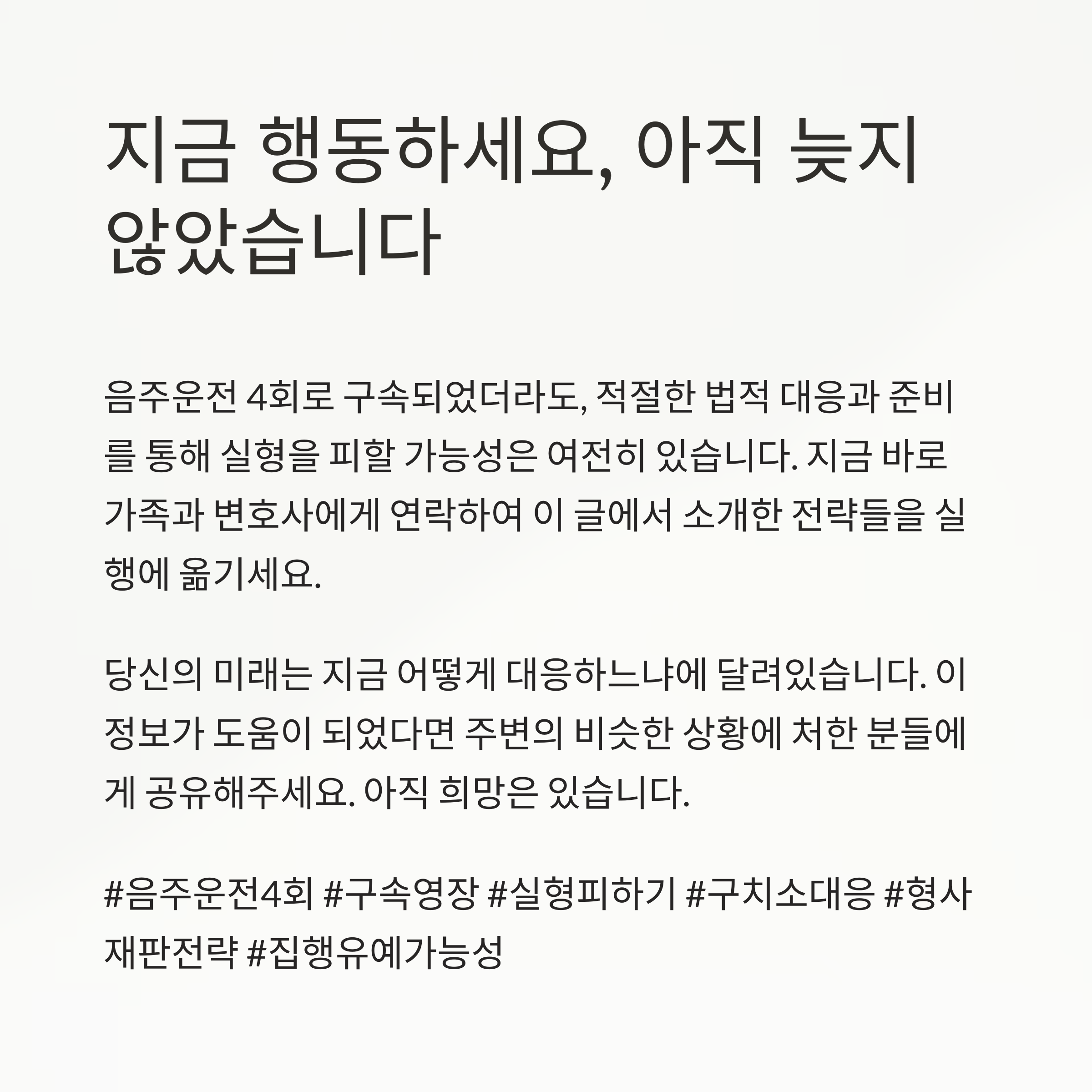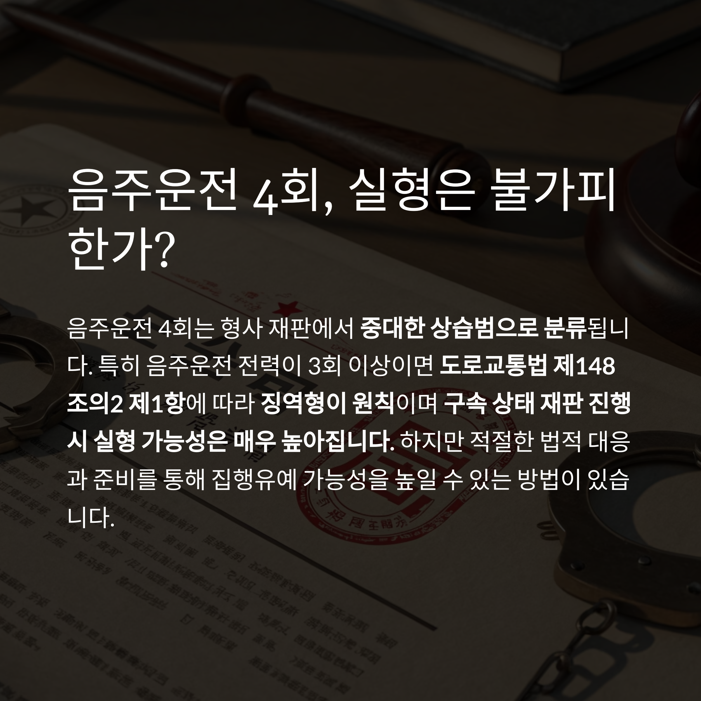 #음주운전4회 #구속영장 #실형피하기 #구치소대응 #형사재판전략 #집행유예가능성