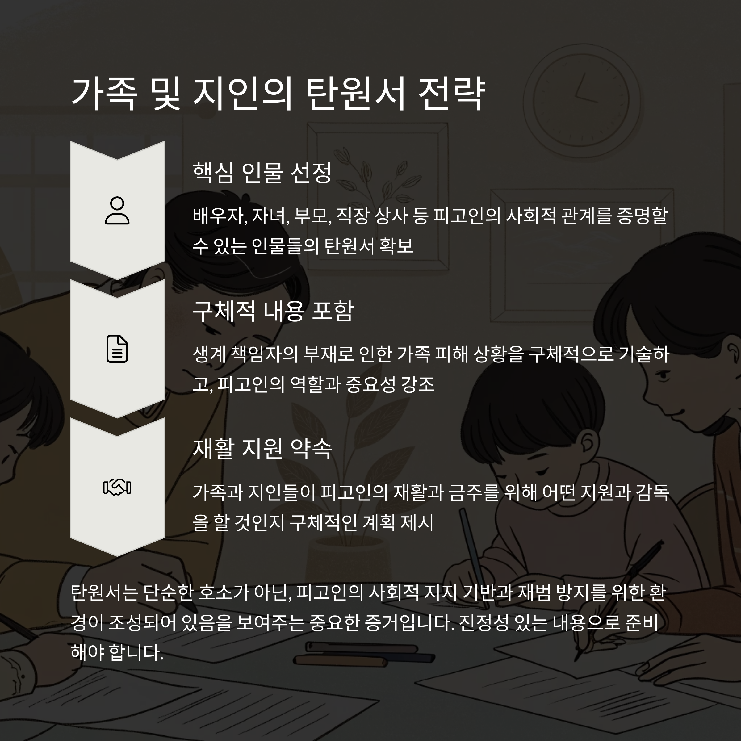 - 가족 탄원, 생계 곤란, 사회적 반성 자료 제출"