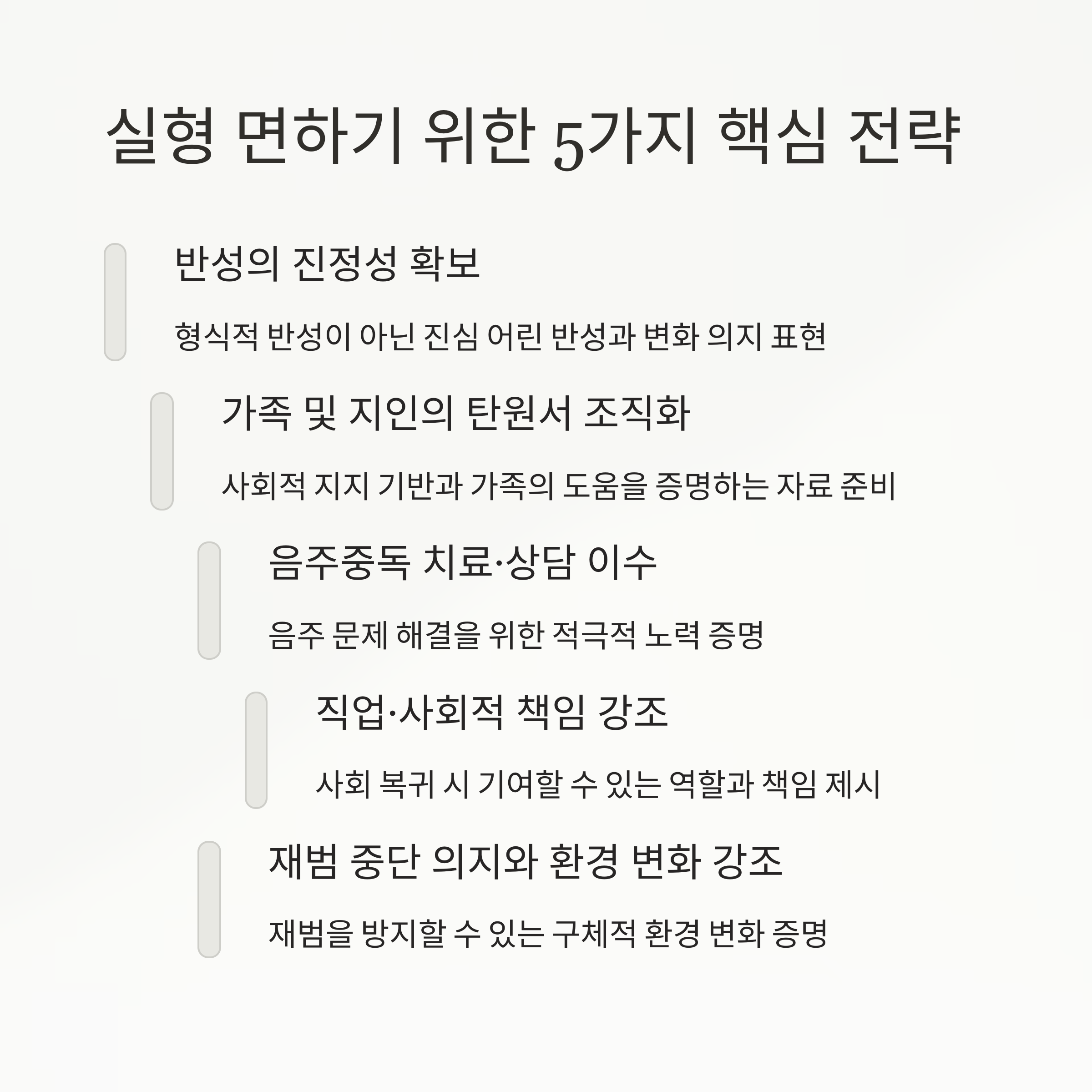 단순한 반성이 아닌 입체적인 전략과 증거 기반 방어만이 실형을 면할 수 있는 방법입니다.