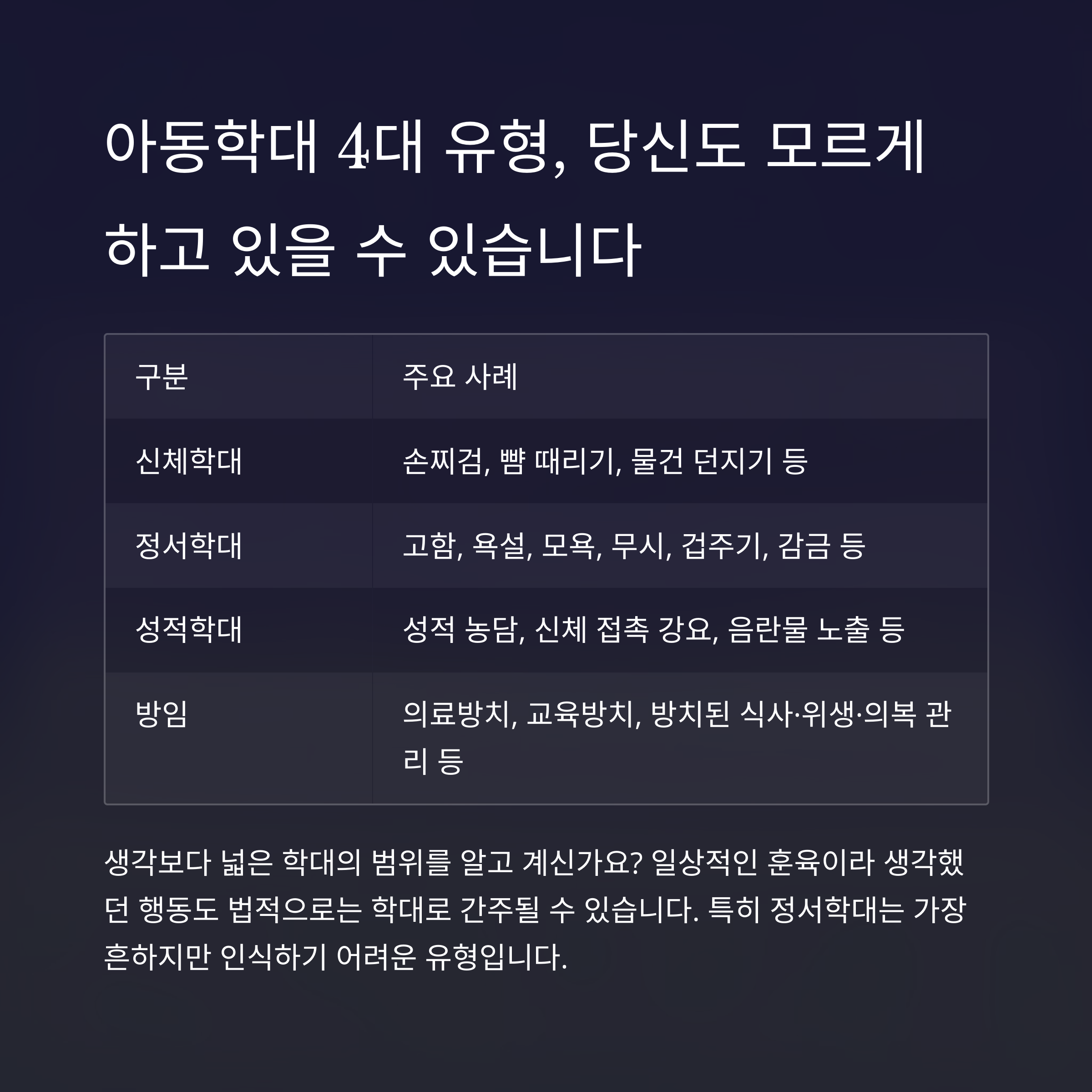 아이에게 상처로 남았다면 법은 ‘학대’로 판단합니다.