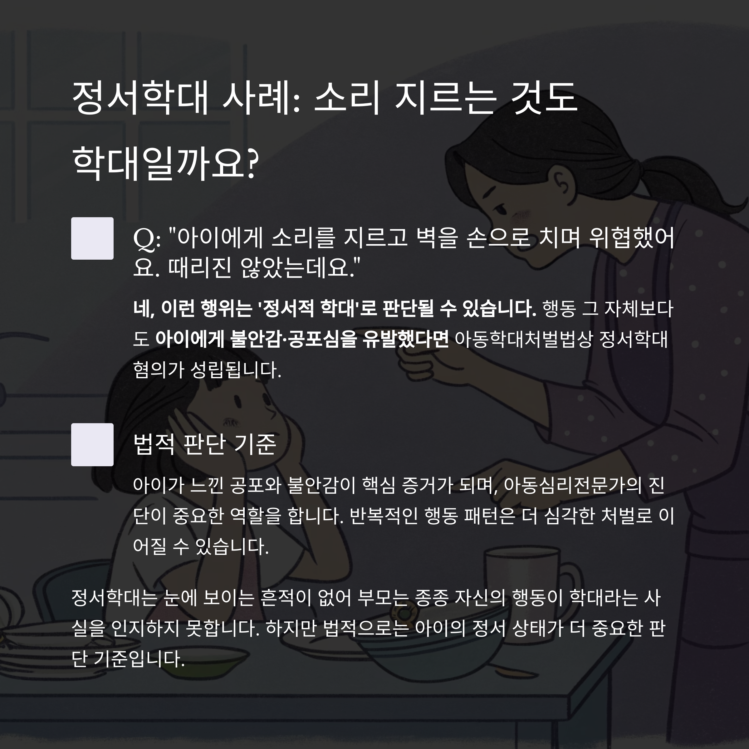 정서적 위협이나 무관심만으로도 ‘학대’로 간주될 수 있습니다.