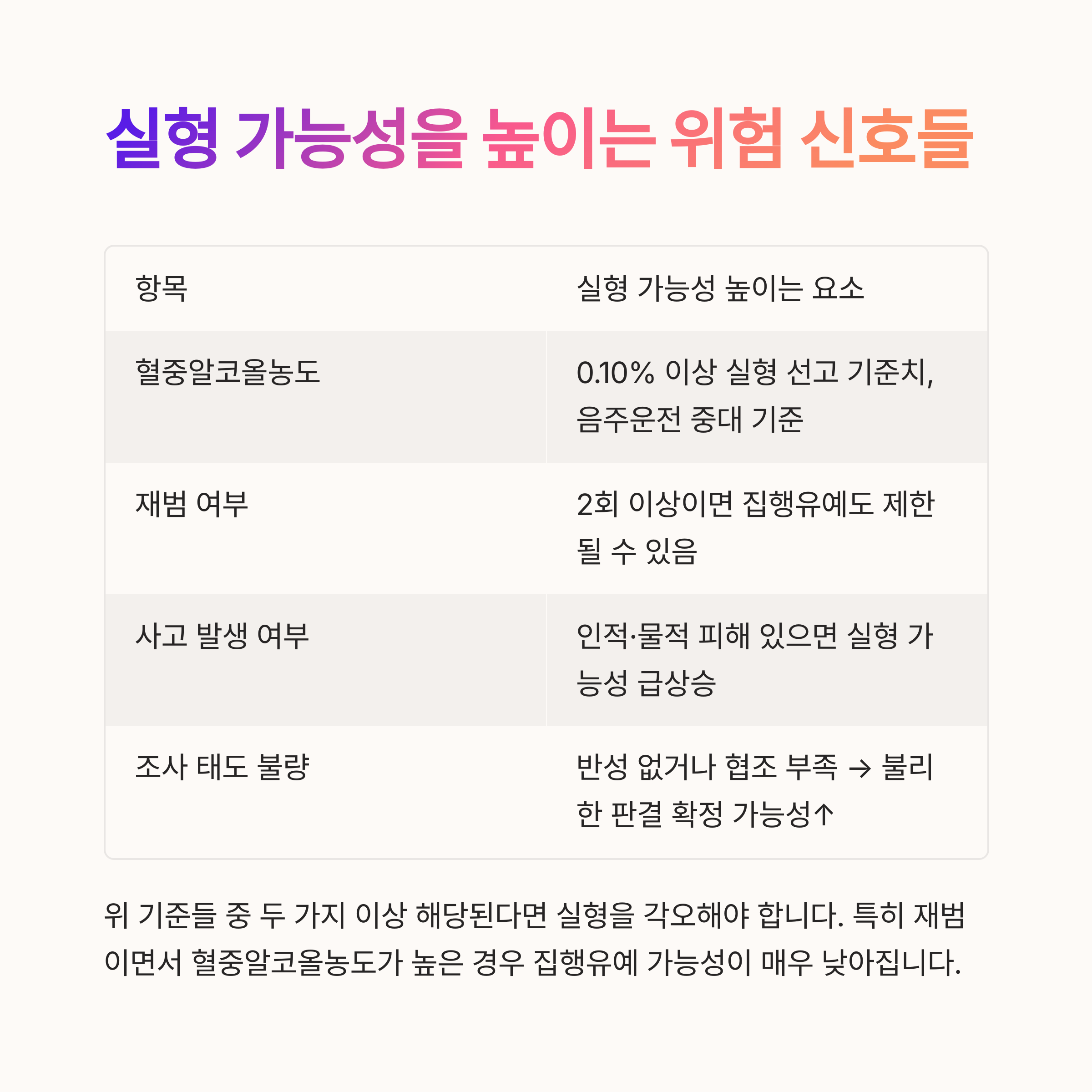 | 사고 발생 여부 | 인적·물적 피해 있으면 실형 가능성 급상승 |