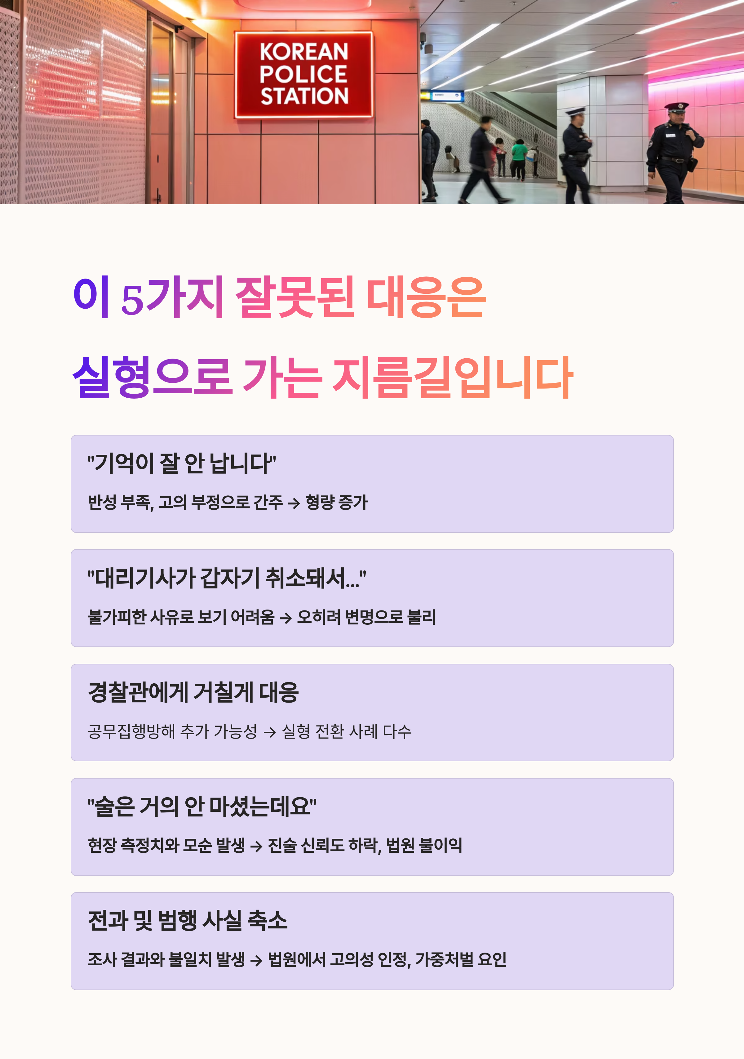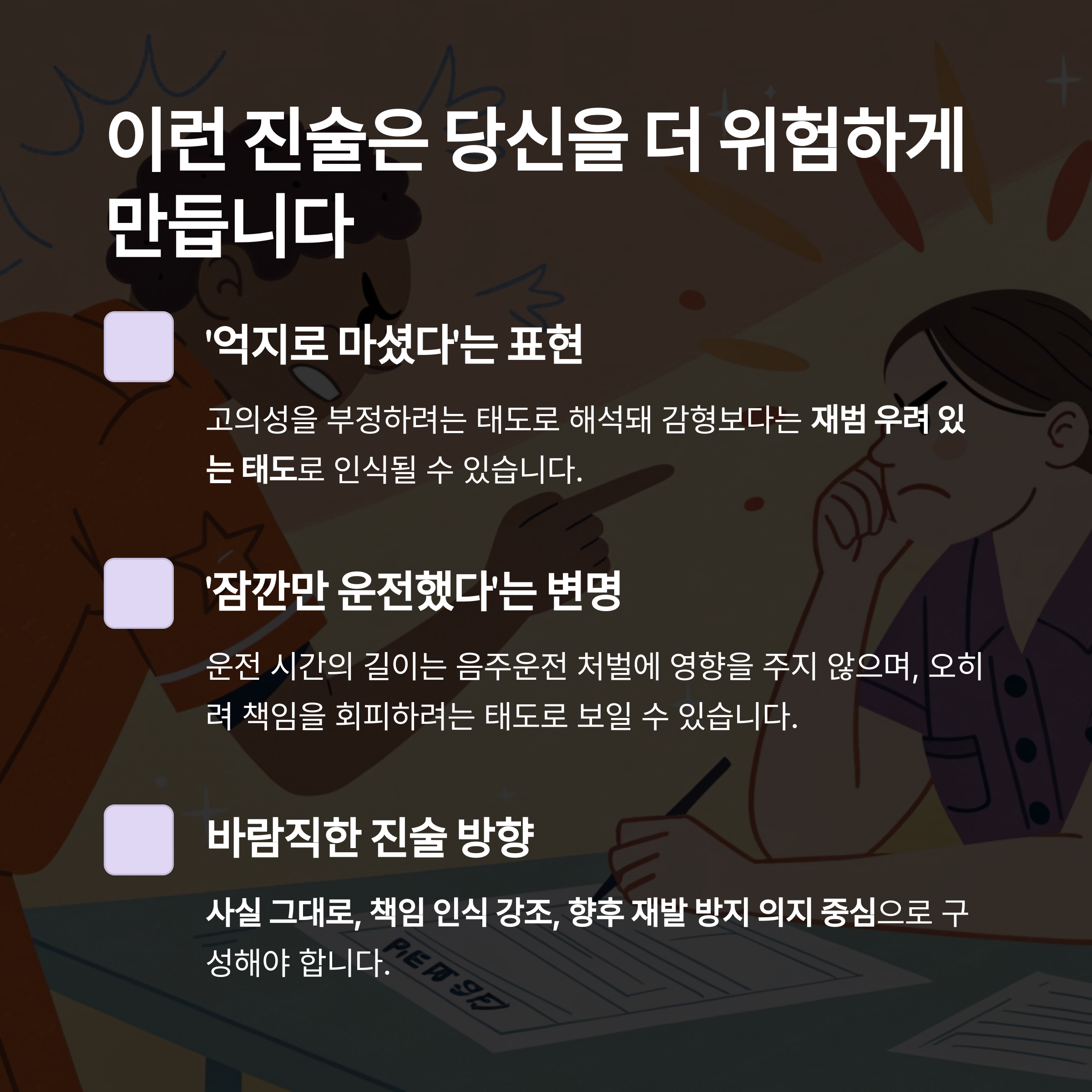 #음주운전경찰조사 #진술실수주의 #형사처벌수위 #반성문전략 #실형피하기 #집행유예가능성
