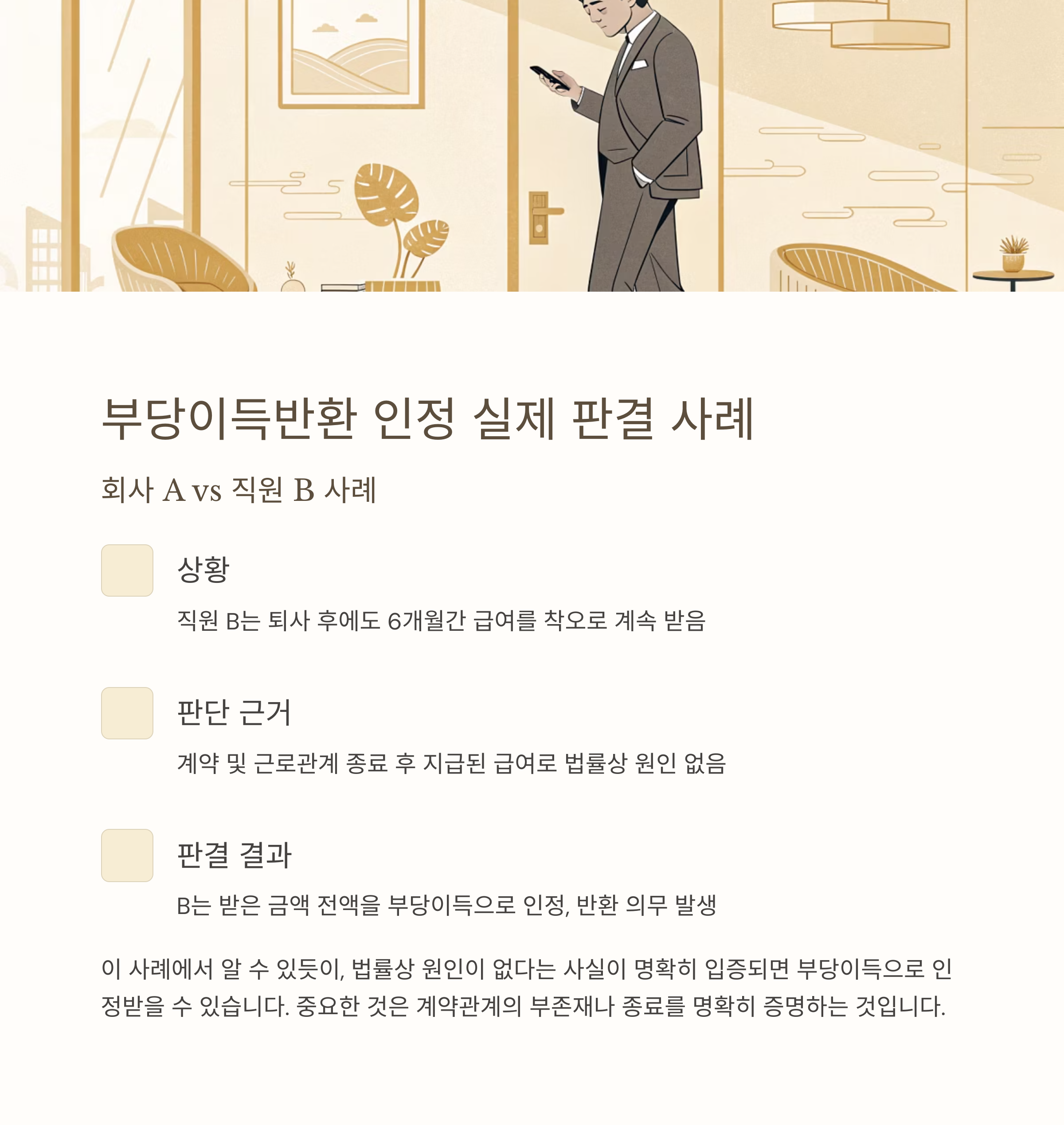 핵심: 계약이나 법적 근거 없이 취득된 이익이 있어야 부당이득이 성립됩니다.