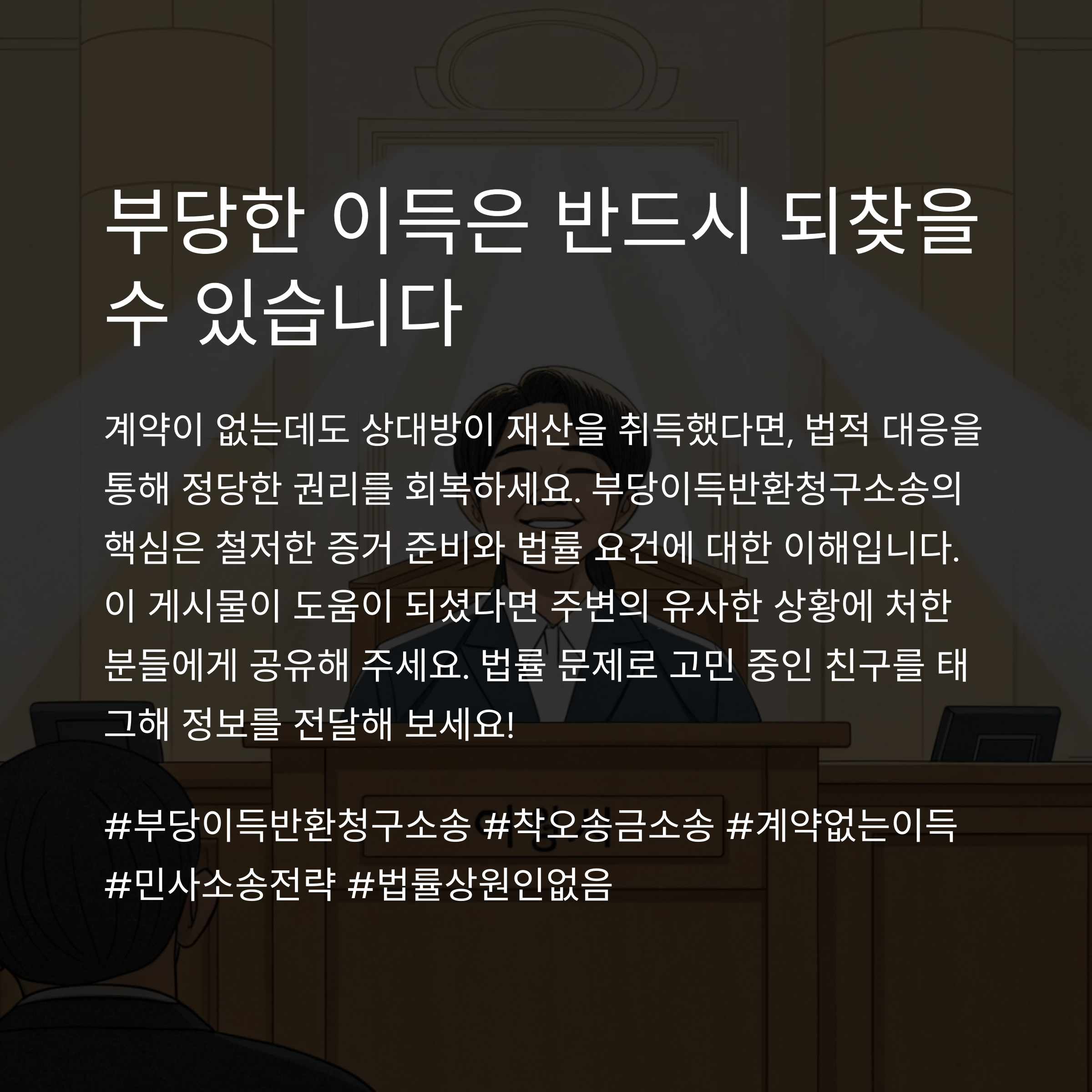 #부당이득반환청구소송 #착오송금소송 #계약없는이득 #민사소송전략 #법률상원인없음 #부당이득입증방법 #소송준비자료 #금전반환청구 #계좌이체착오 #부당수령피해