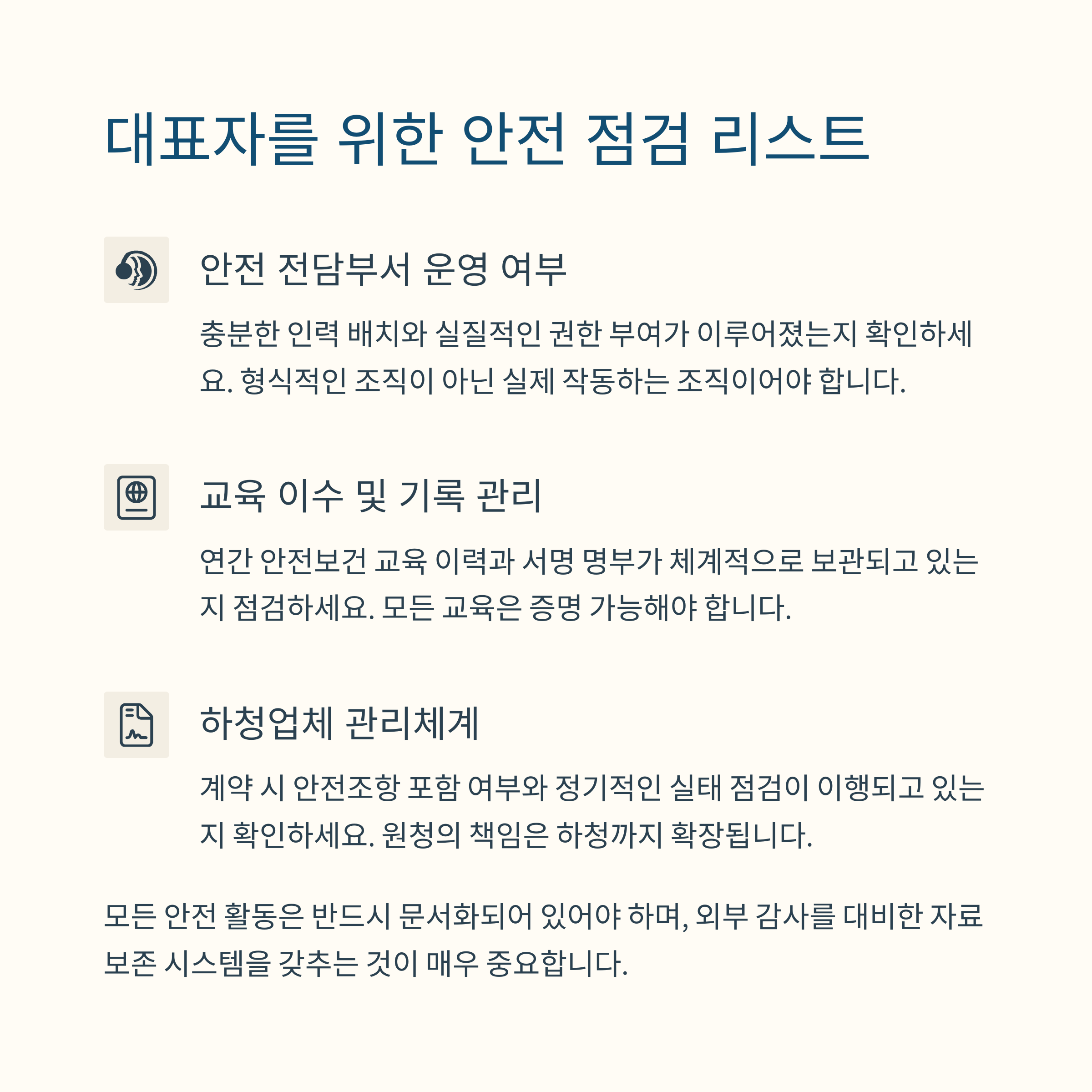 핵심: 현장 책임자에게 넘긴다고 해도, 대표자의 총괄책임은 없어지지 않습니다.