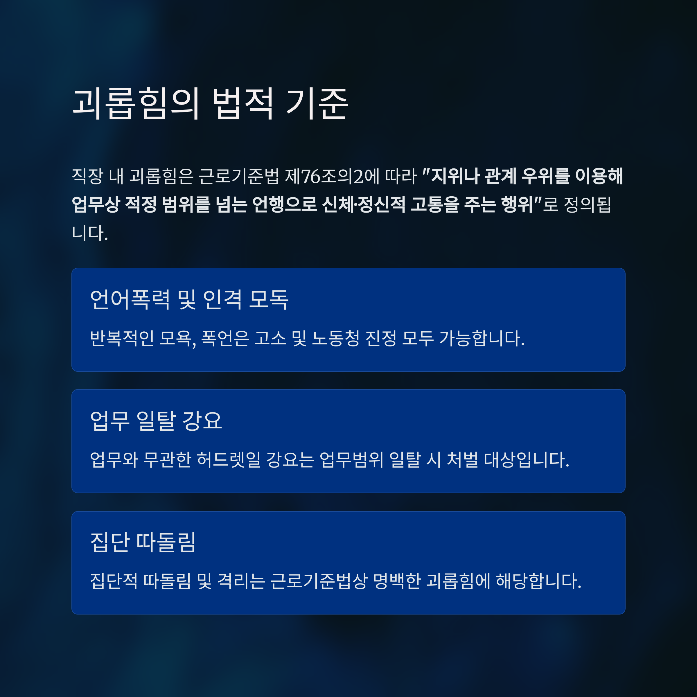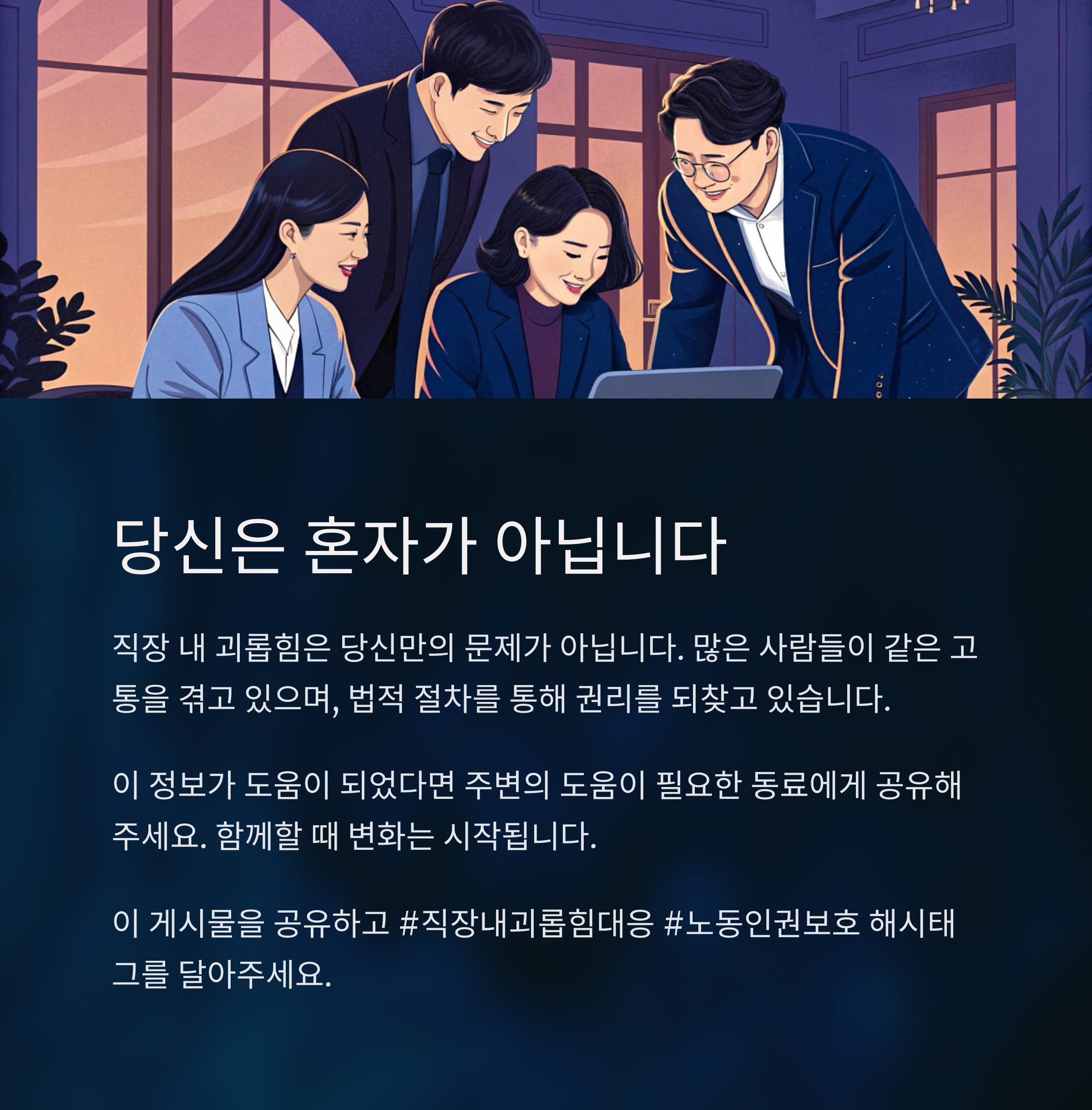 직장 내 괴롭힘은 단순한 감정 다툼이 아닌 명백한 ‘노동 인권 침해’이며,