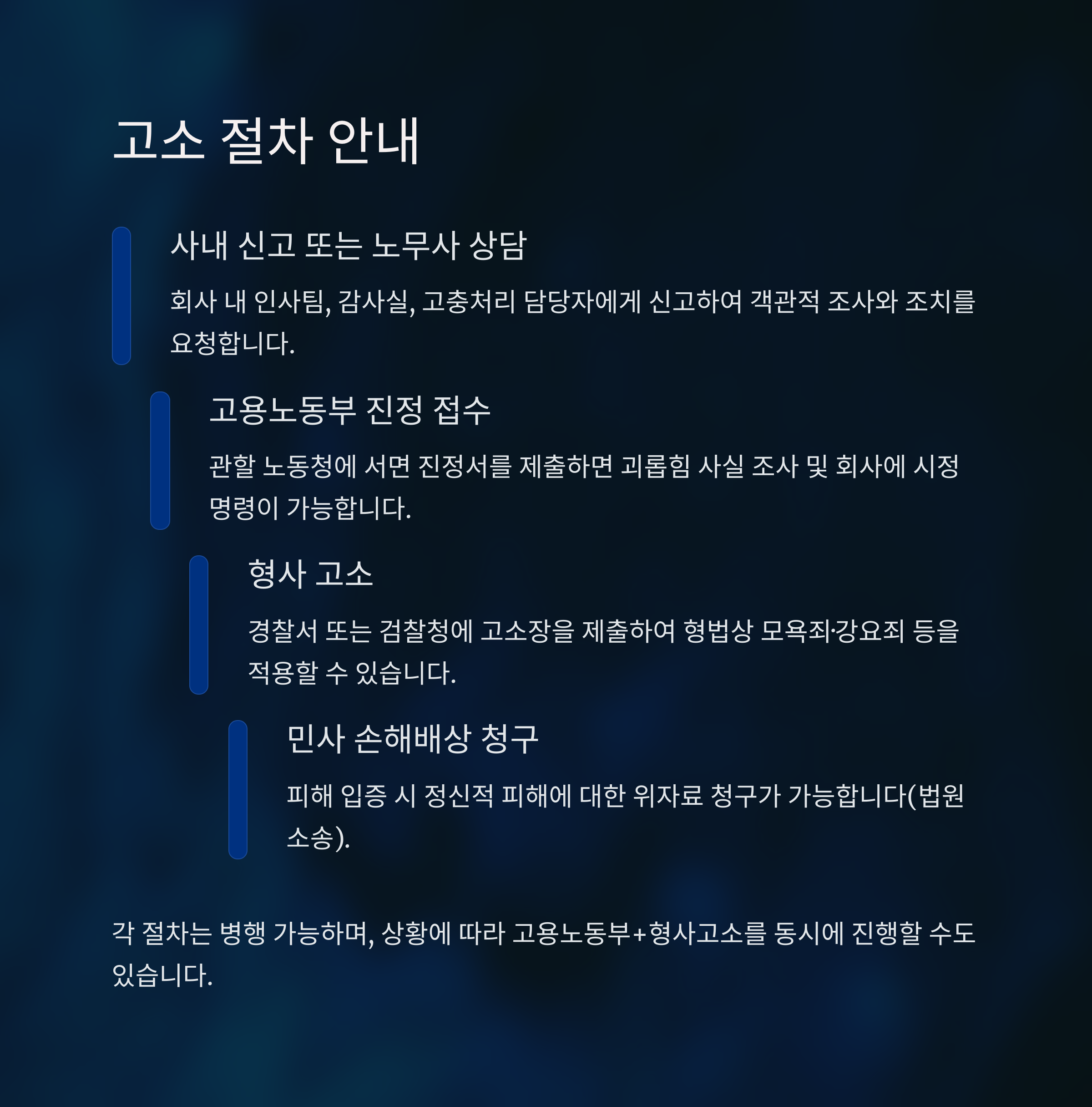 직장 내 괴롭힘 고소 절차는 어떻게 진행되나요?