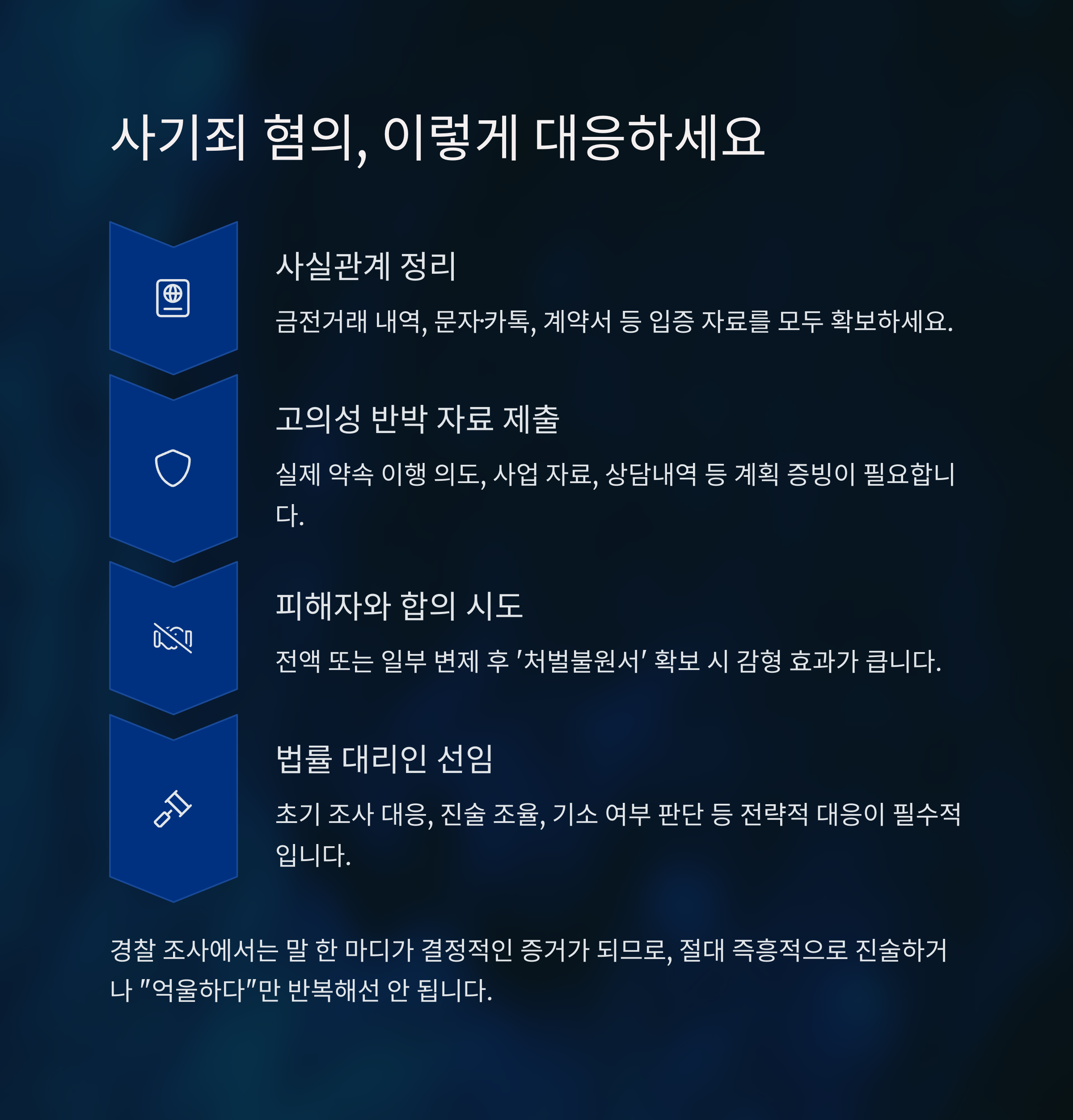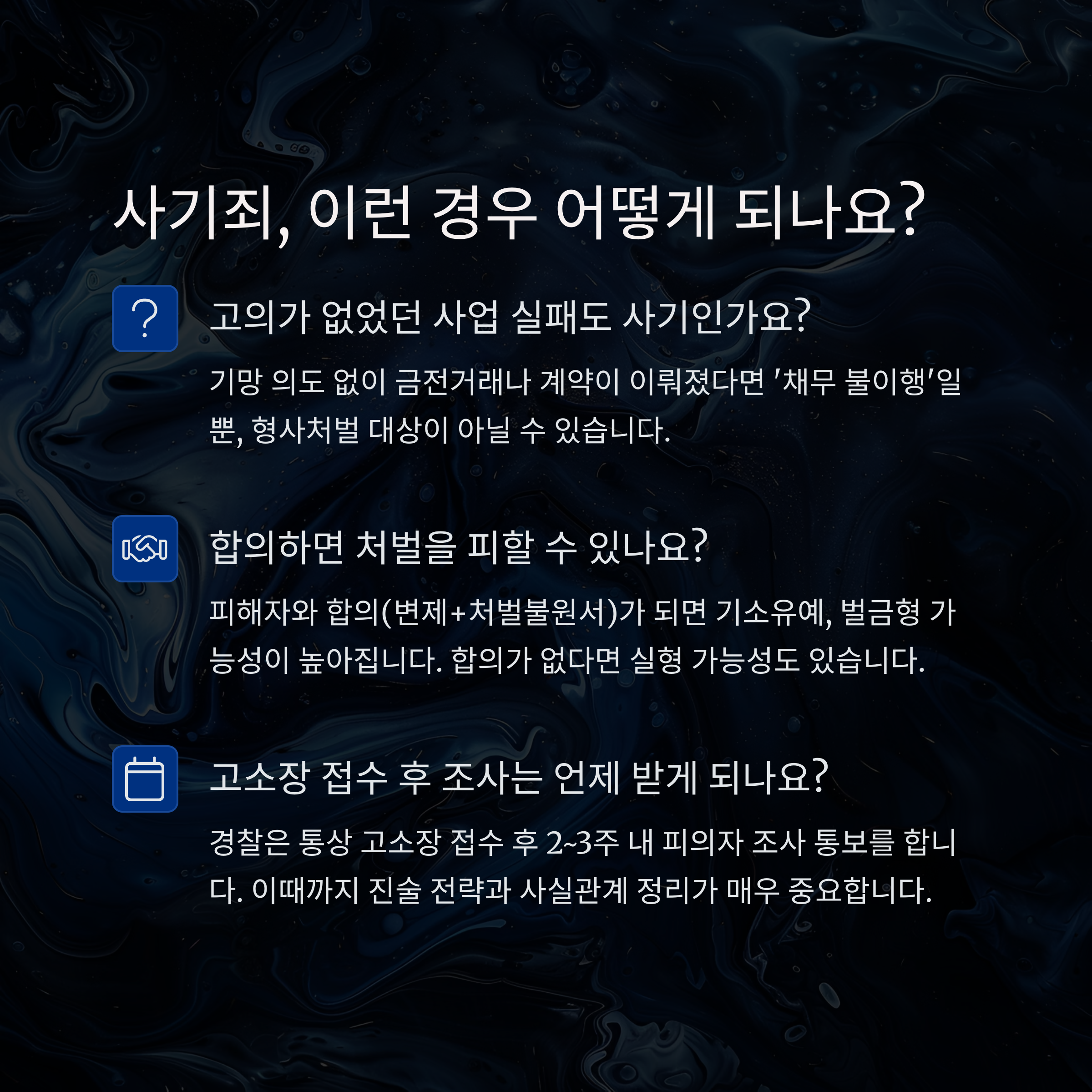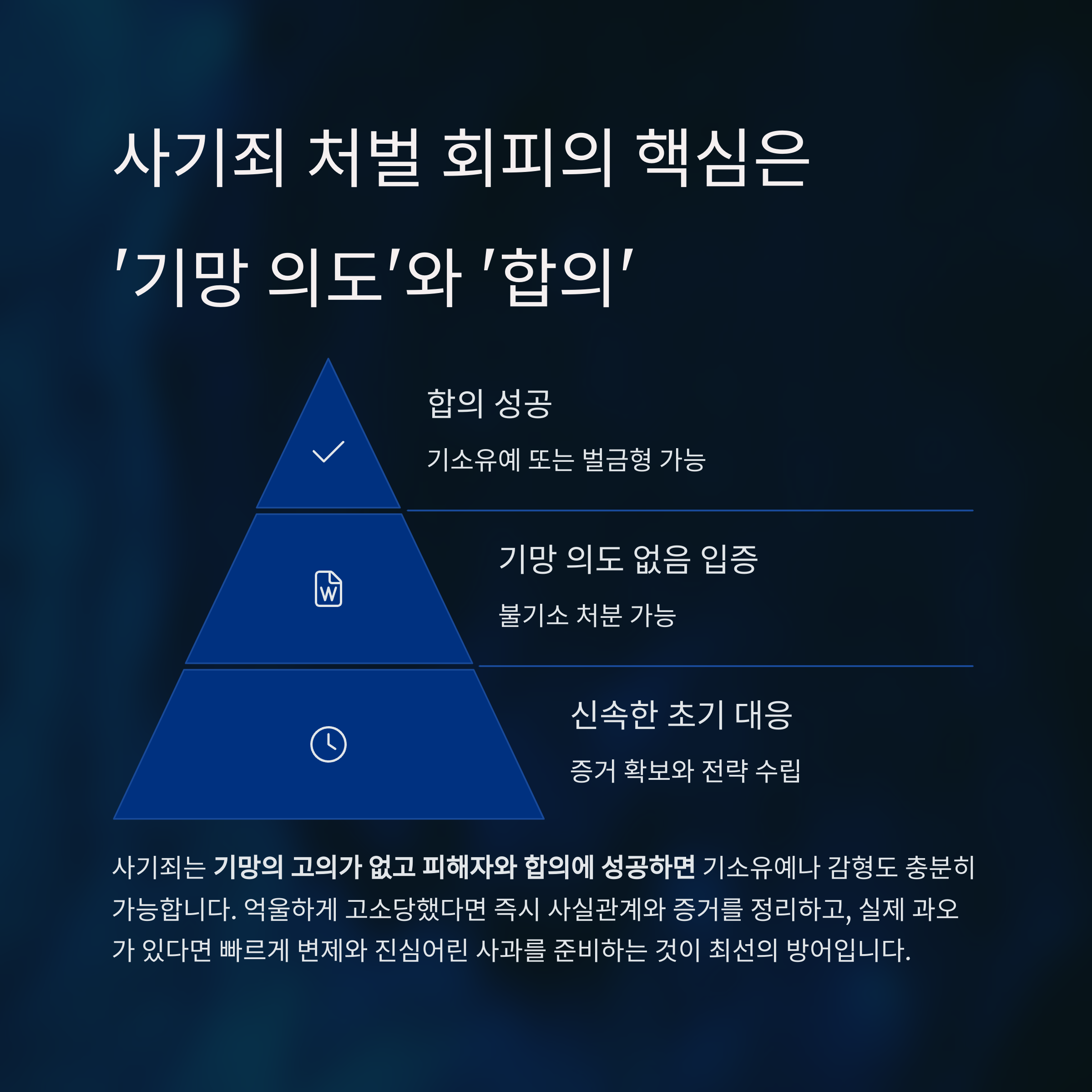 #사기죄처벌 #사기죄고소대응 #기망행위요건 #사기초범 #벌금형가능성 #사기합의전략 #형사고소대응법 #피해자처벌불원 #사기혐의입증 #사기고소합의금