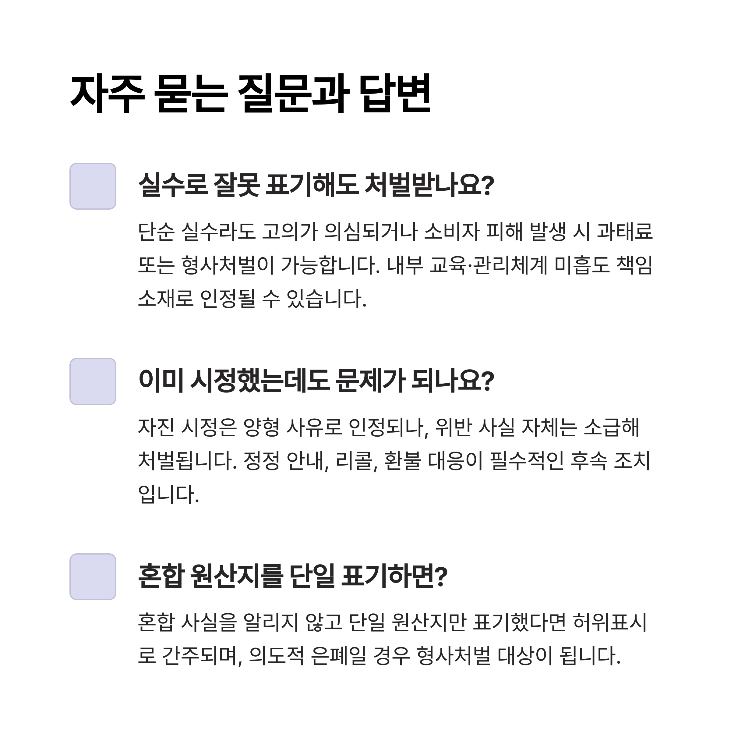 Q&A: 원산지 표시 위반 관련 주요 질문