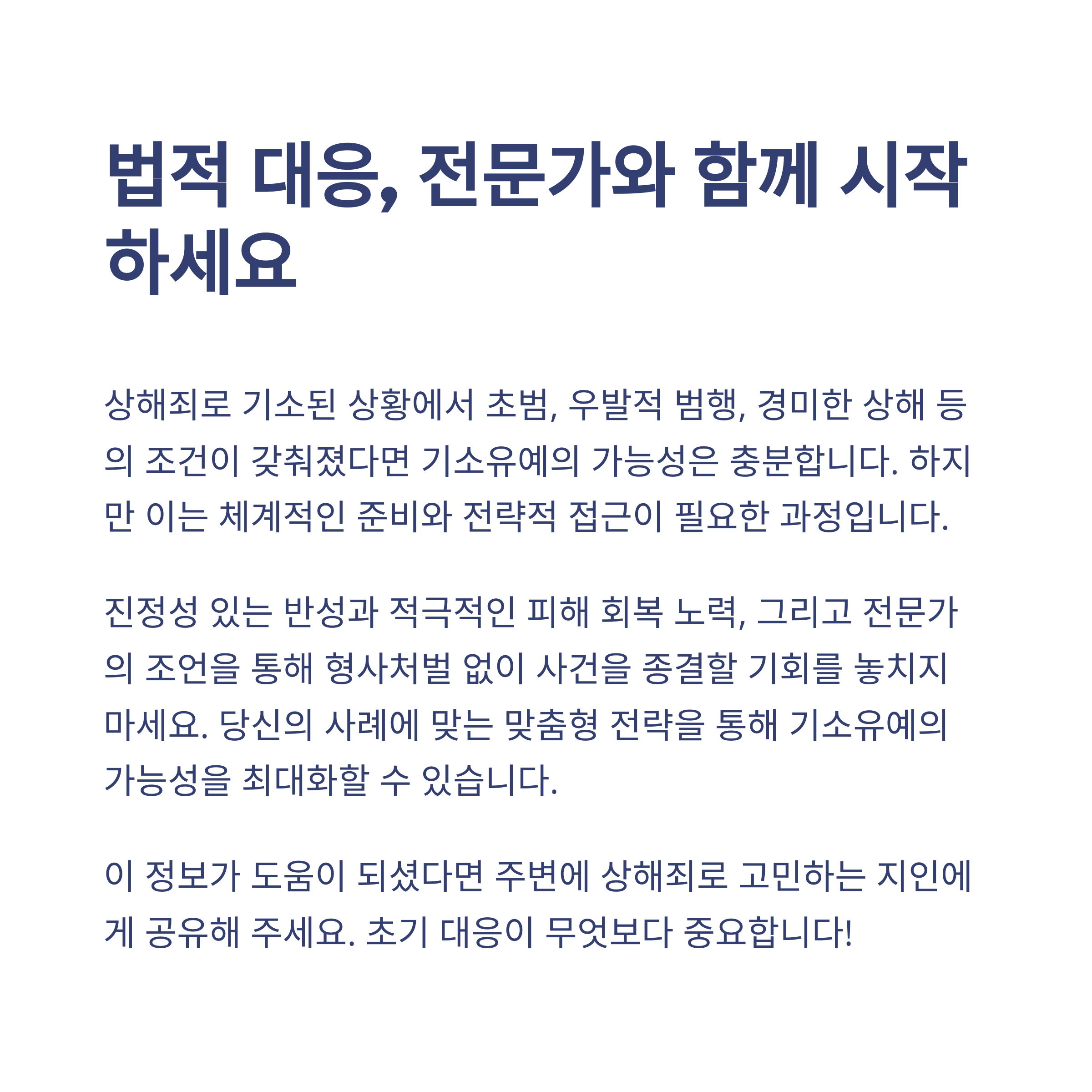 #상해죄기소유예 #초범상해처벌 #피해자합의전략 #처벌불원서작성법 #반성문전략 #경미한상해감형 #폭행죄기소유예 #검찰선처요청 #형사처벌회피전략 #우발적범행감경