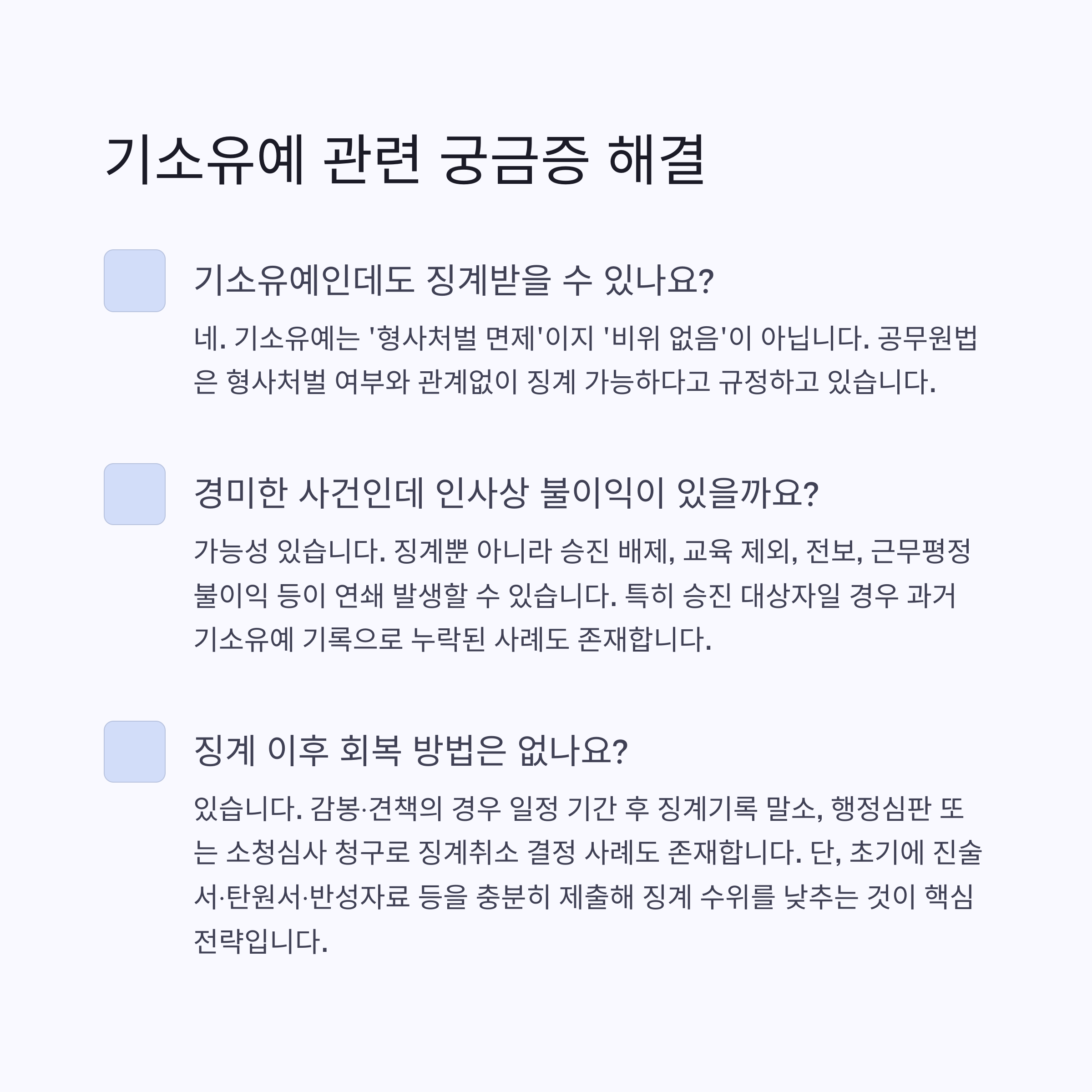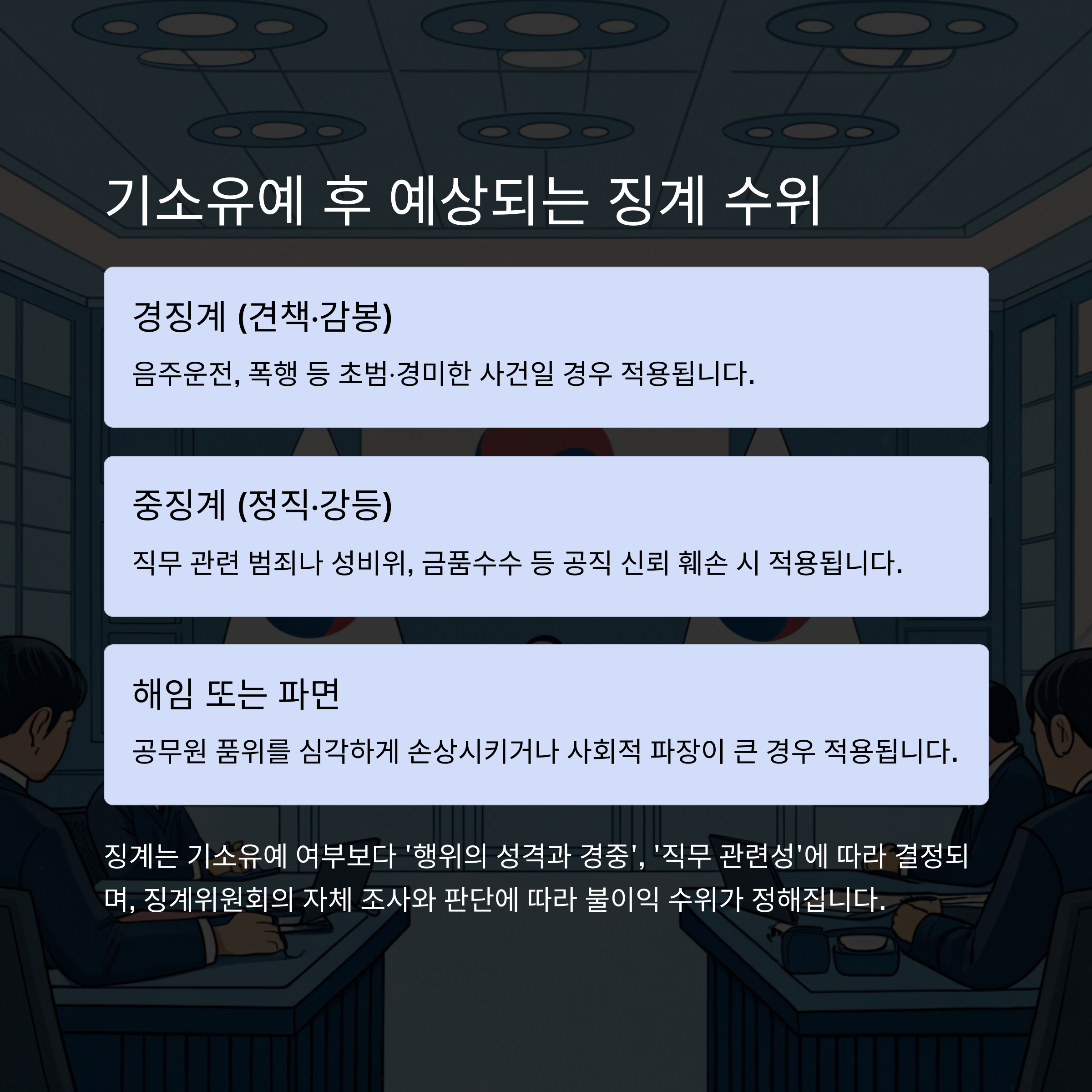 #공무원기소유예 #공무원징계기준 #형사처분영향 #기소유예징계사례 #공무원인사불이익 #견책감봉전략 #기소유예소청심사 #승진배제사례 #비위경위서작성법 #공직생활리스크관리