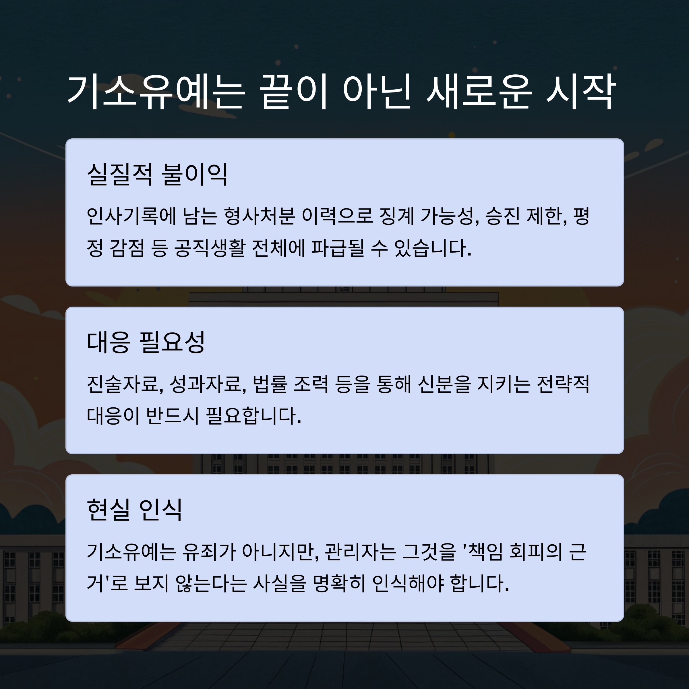 징계뿐 아니라 승진 배제, 교육 제외, 전보, 근무평정 불이익 등이 연쇄 발생할 수 있습니다.