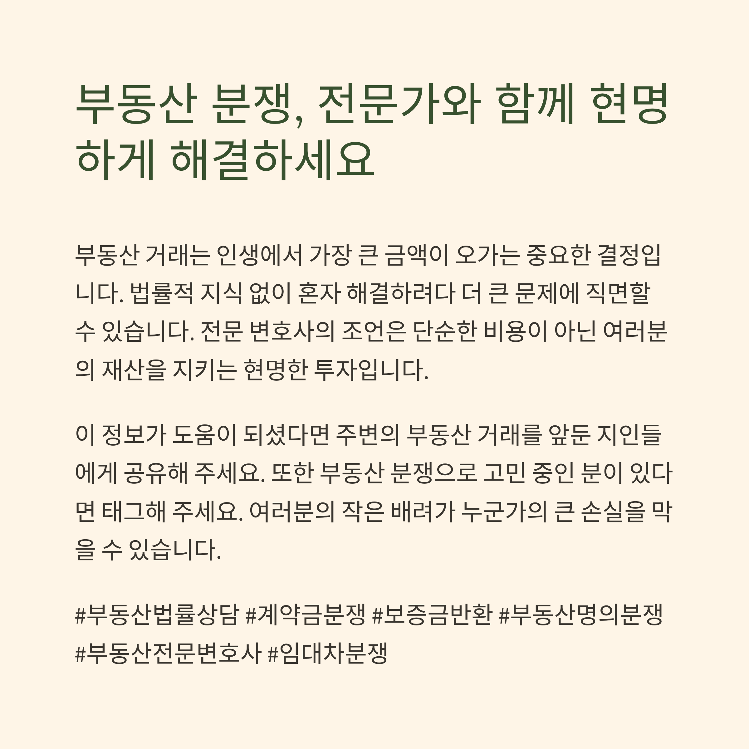 부동산 분쟁은 감정이 아닌 법으로 접근해야 해결됩니다.