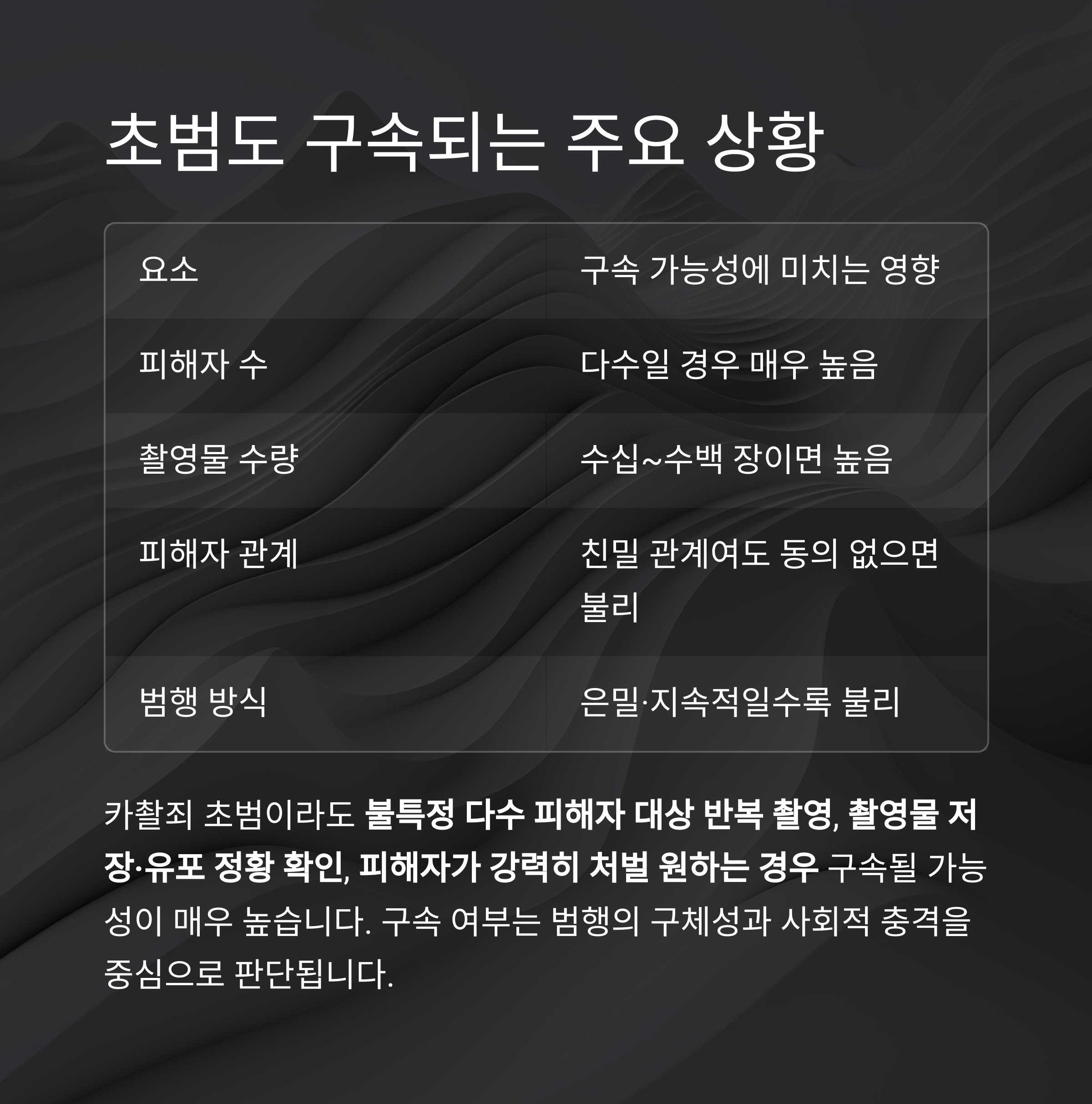 핵심 요약: 카촬죄 초범의 구속 가능성 요건 정리