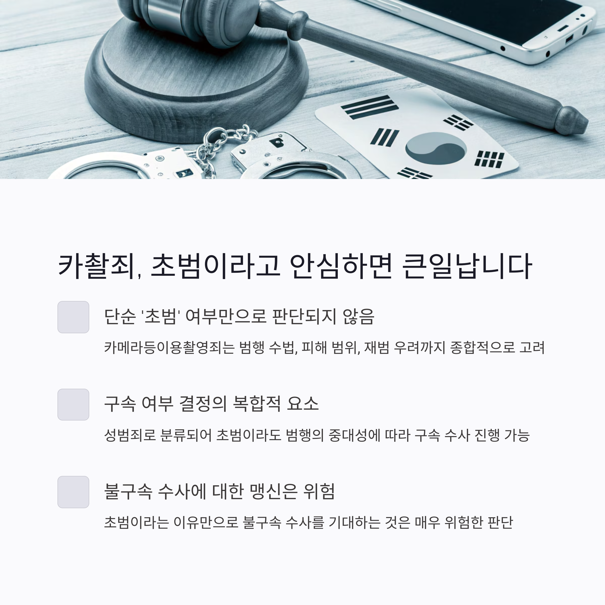 #카촬죄초범구속 #카메라촬영범죄 #불법촬영처벌 #성폭력처벌법 #불구속대응전략 #초범처벌사례