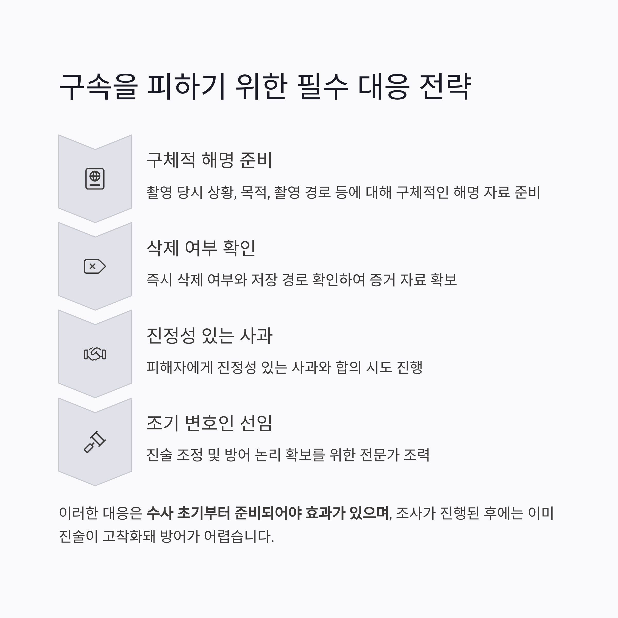 - 조기 변호인 선임을 통한 진술 조정 및 방어 논리 확보